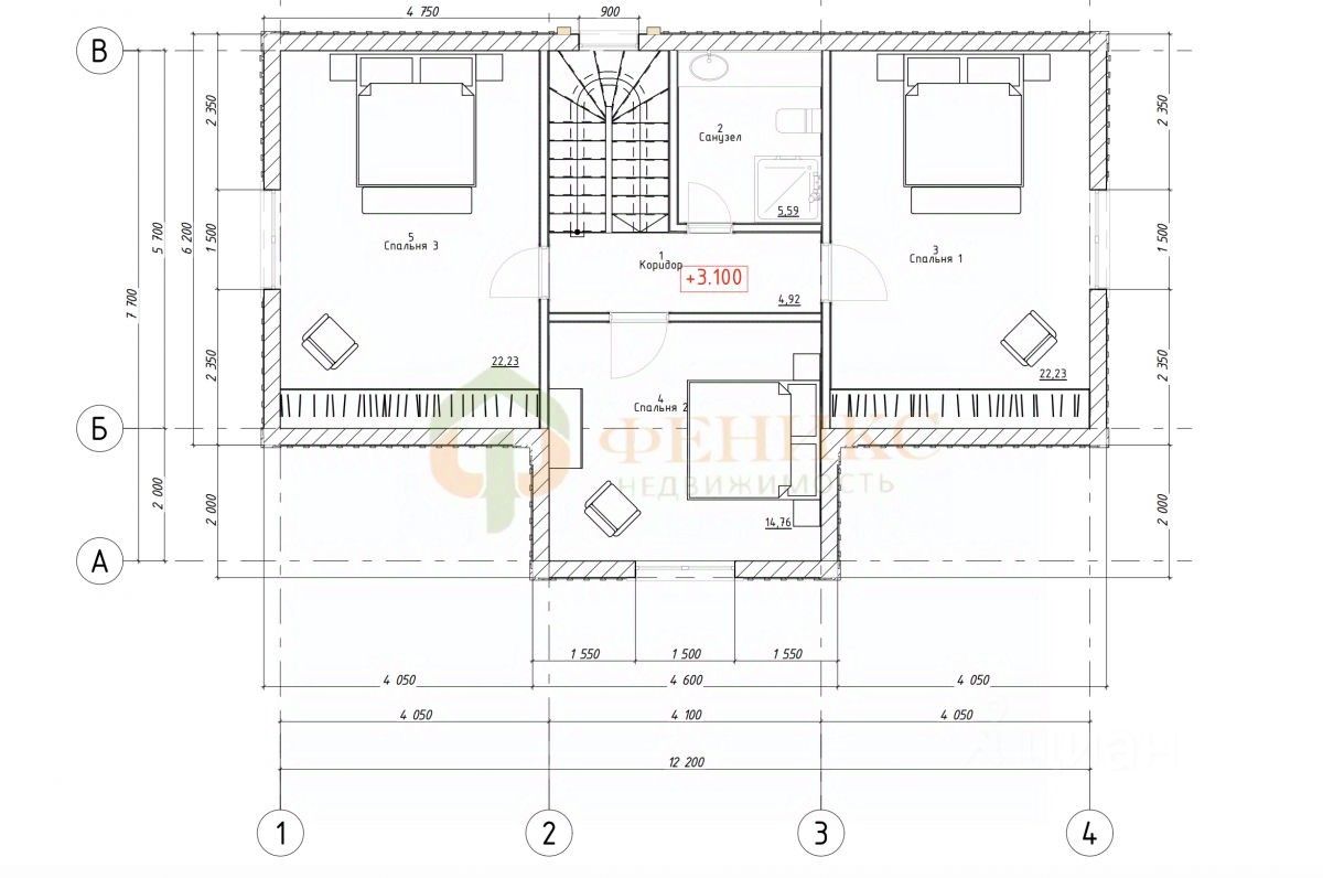 2-й эт Спальни -22.23, 22.23, 14.76 Сан./уз- 5.54. Коридор-4.92