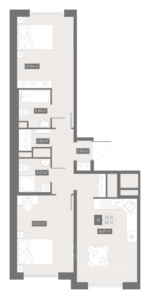 Цена со скидкой до 30% в прямой продаже от застройщика — только в этом месяце. Беспроцентная рассрочка. 2-к квартира в ЖК Up-квартал ''Новый Московский'' на 5-м этаже. Общая площадь 59,33. Без отделки.