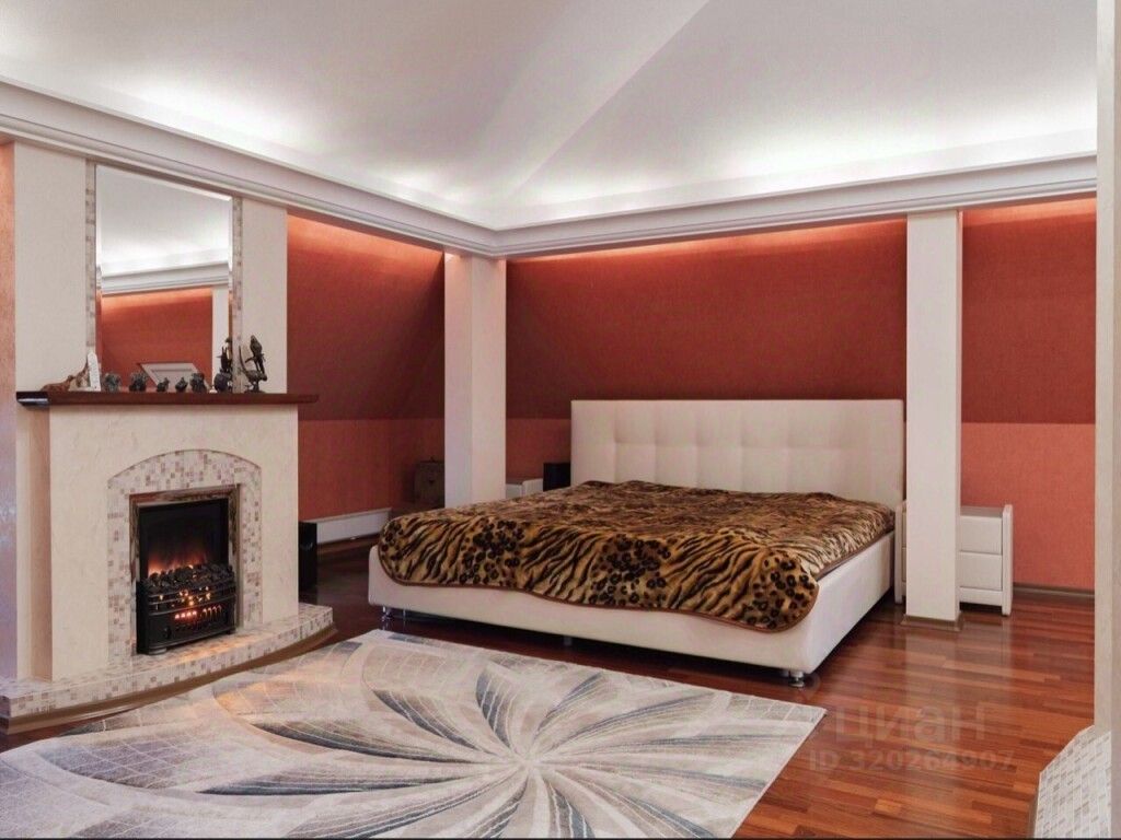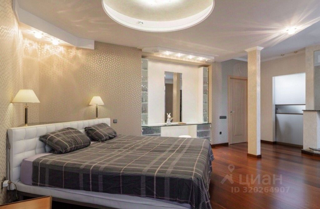 Расположена просторная спальная комната.