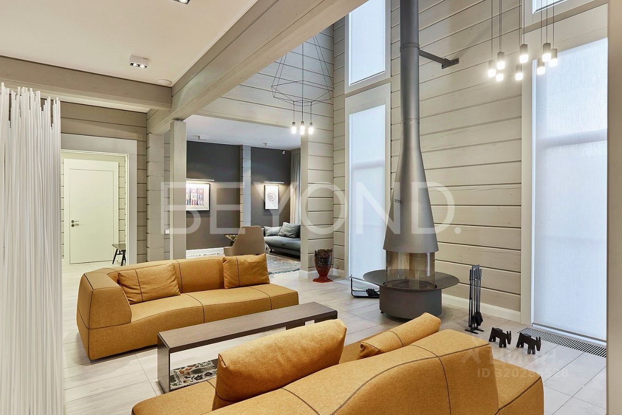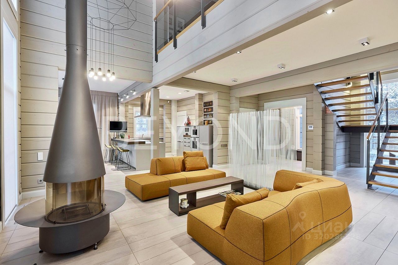 Предлагается к продаже стильный дом, построенный из качественного клееного бруса фирмы ''Русь''- одна из лучших корпораций на рынке деревообрабатывающих производственных комплексов. Дизайн дома был разработан архитектором Русланом Васякиным и дизайнером Владимиром Фефеловым, эта их совместная работа была удостоена публикации в журнале ''Elle Decoration''. Дом действительно получился очень стильным, брус во всех помещениях тонирован в серый цвет, что создает единую гамму и настроение. В дом можно попасть как с основного входа, так и с теплого гаража на два машино-места. Площадь первого этажа дома- 150 кв. м, в едином пространстве расположена гостиная в которой теплыми вечерами вы можете разместиться всей семьёй, наблюдая за пламенем разожжённого камина Focus, здесь же дизайнерам удалось разместить камерное пространство для уединения за просмотром телевизора, в столовой в окружении панорамных окон расположился обеденный стол фирмы BB Italia Seven, Стильная и компактная кухня фирмы Bulthaup b3 и островок с барными стульями Gubi завершают этот прекрасный ансамбль. Второй этаж дома занимает 130 кв. м, уступив пространство для второго света, которое дизайнеры очень удачно обыграли подвесными светильниками фирмы Vibia. Здесь расположились три спальных комнаты, каждая из которых обладательница шикарного вида и панорамных окон, а также кабинет, обустроенный декором и мебелью фирмы: Bulthaup, Wogg, Hermes. Спальня хозяина была обустроена с особой любовью, с выходом на балкон и шикарной ванной комнатой, в которое наслаждаясь спа-процедурами, из окна вам открываются прекрасные виды. Сама ванная как и вся сантехника, производства фирмы Agape.