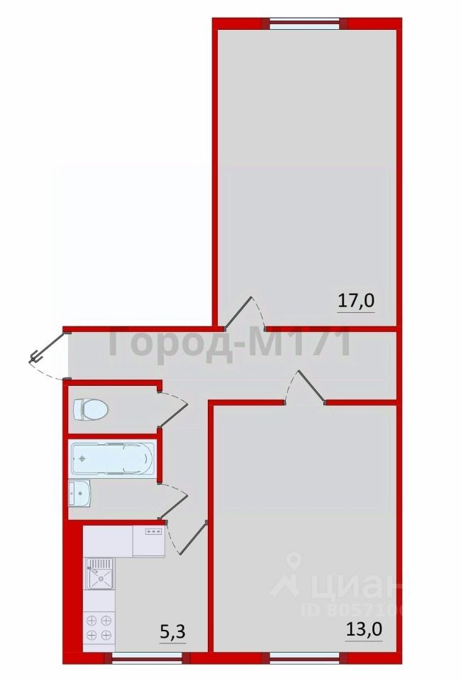 Общая площадь - 46.6 кв.м., комнаты изолированные - 17 кв.м. и 13, кухня - 5,3 кв.м. Раздельный санузел. Окна выходят на две стороны: во двор и на зеленую зону. Комнаты правильной прямоугольной формы. В спальне есть вместительная гардеробная. Чистая парадная. Спокойные, дружелюбные соседи.
