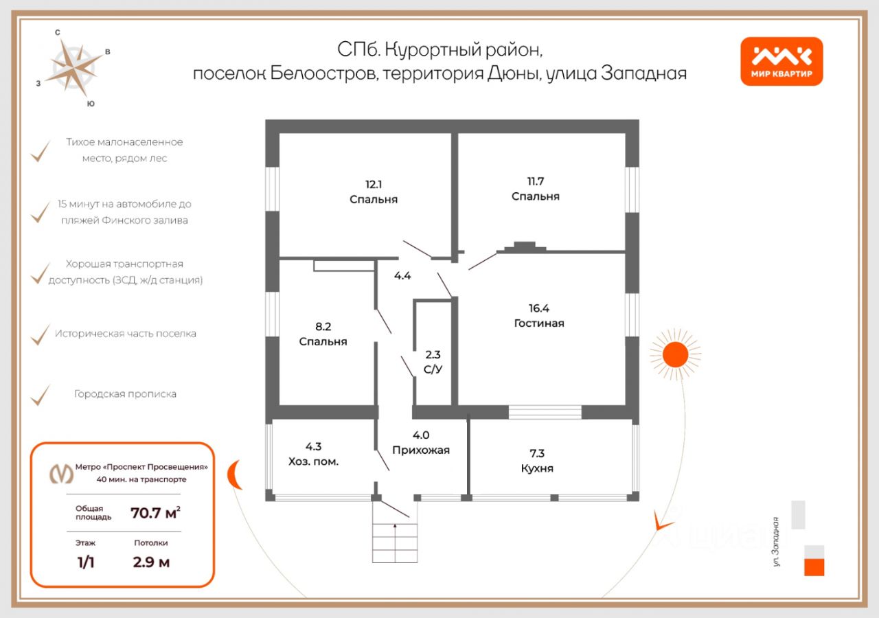 Удобная транспортная доступность: рядом ж/д станция, до метро всего 24 минуты. А до пляжей Финского залива 10 минут на автомобиле.