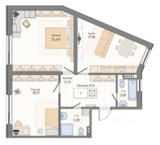 Уютная квартира с двумя санузлами и просторной кухней 17 м² — отличное решение для тех, кто ценит комфорт и функциональность.
