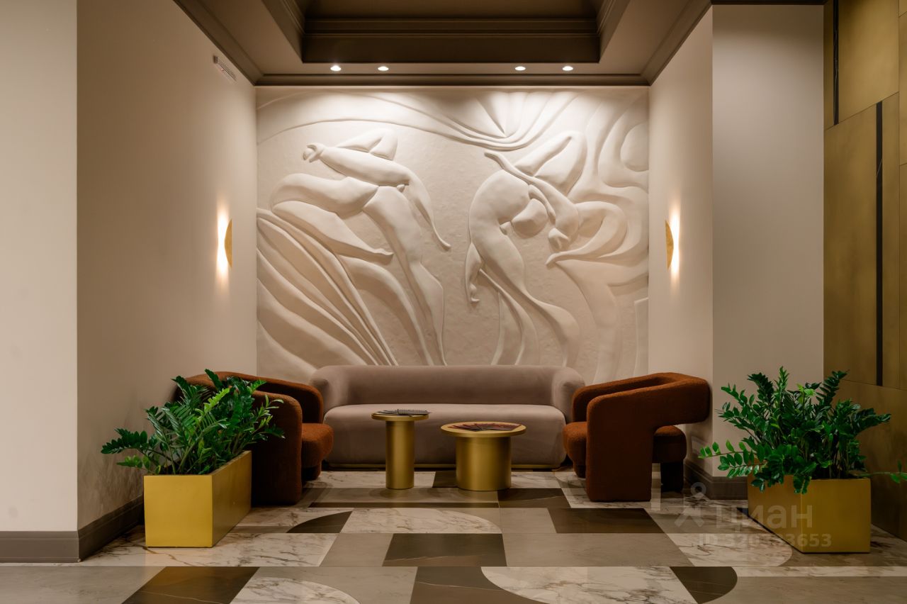Большая колясочная на первом этаже Дизайнерское лобби с барельефом Паркинг на уровне первого этажа