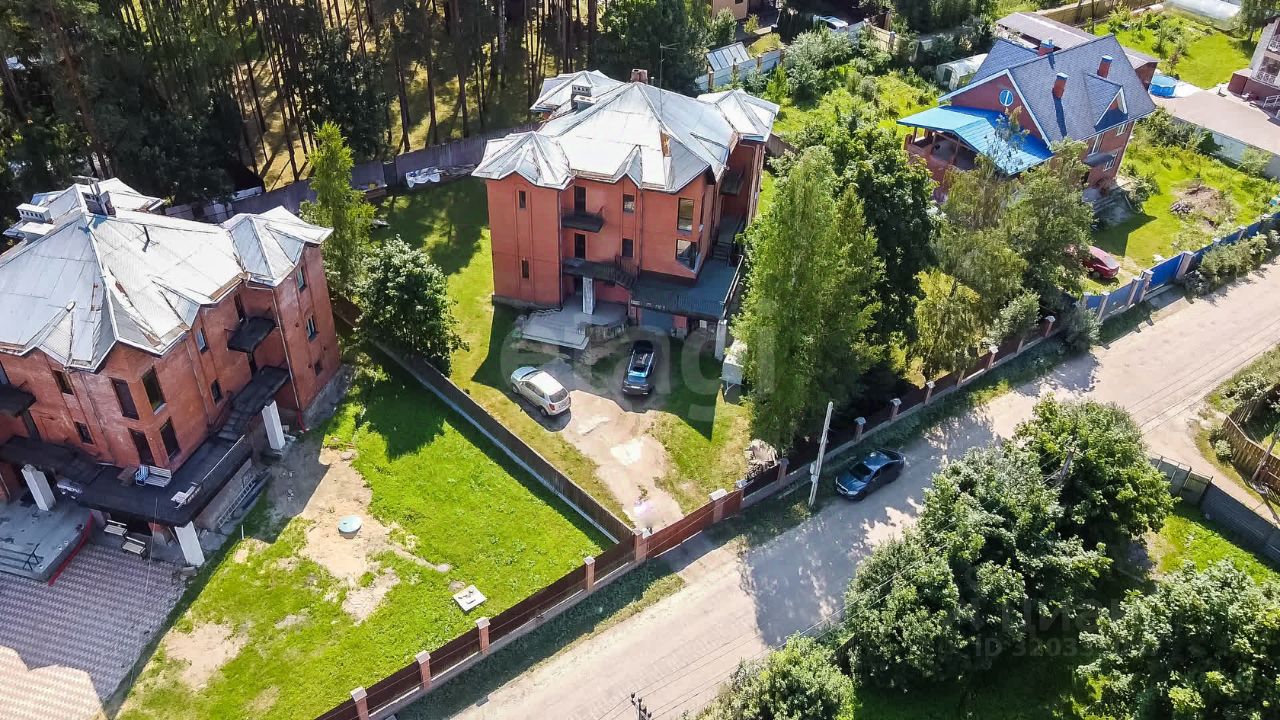 Дом построен из кирпича, что гарантирует долговечность и высокую энергоэффективность. На первом этаже расположены просторная прихожая, гостиная с русской печью, кухня-столовая и котельная с двумя газовыми котлами. Водоснабжение автономное — скважина, электрическая мощность 15 кВт. Деревянная лестница ведет на второй и третий этажи, где размещены несколько спален, гостиная с камином и домашним кинотеатром, кабинет, прачечная. На каждом этаже оборудованы санузлы с ванной или душевой кабиной. Большие балконы с выходами на три стороны позволяют наслаждаться видом на природу.