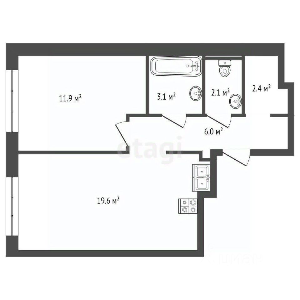 Жилая площадь11,9 м2