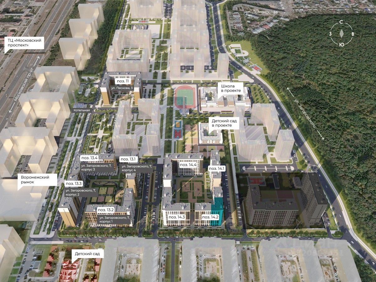 В жилом комплексе проектом предусмотрено 11 жилых домов (4 уже сданы) с использованием технологий монолитного и объемно-блочного домостроения