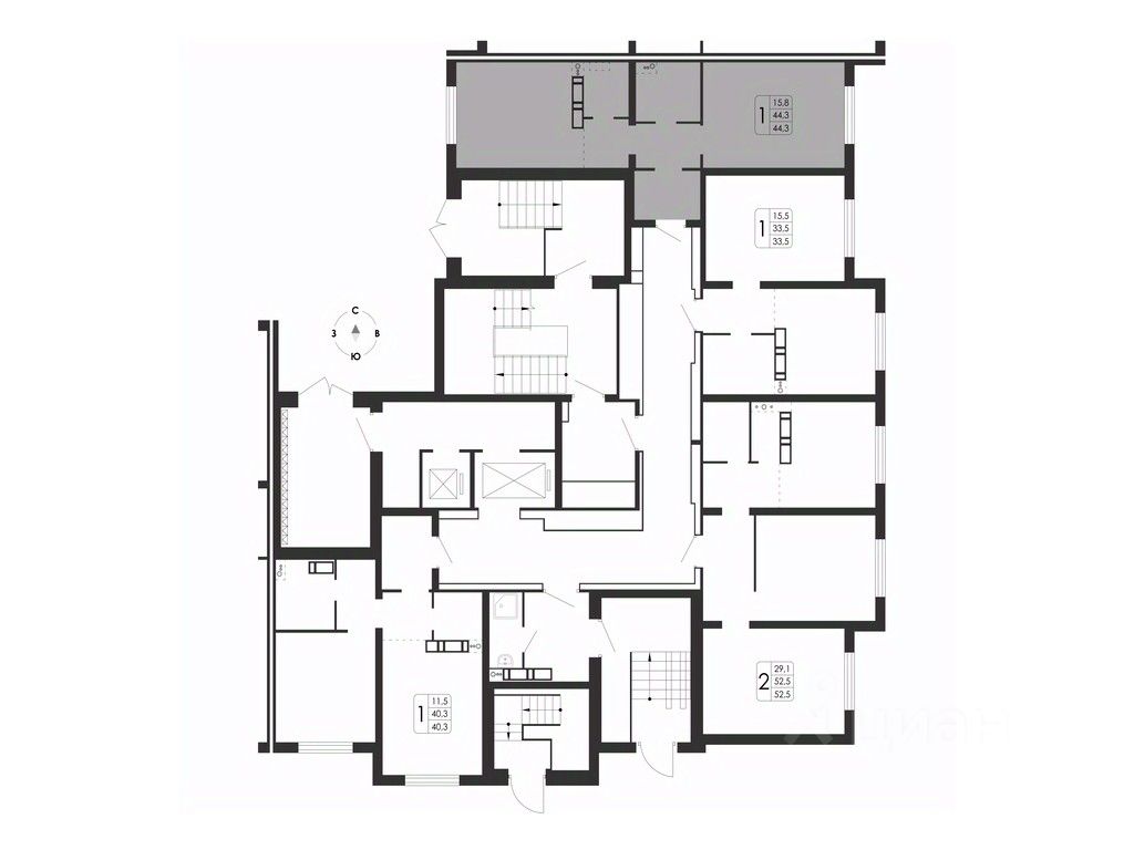 Общая площадь44,3 м2