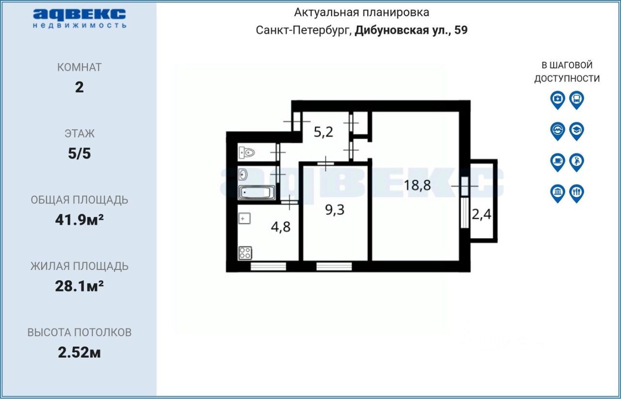 Рядом в пешей доступности метро, школа, торгово-развлекательная инфраструктура, Елагин остров и другие зеленые зоны.