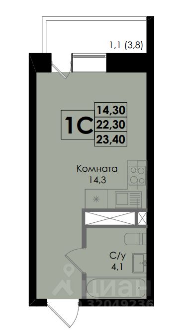 Общая площадь23,4 м2