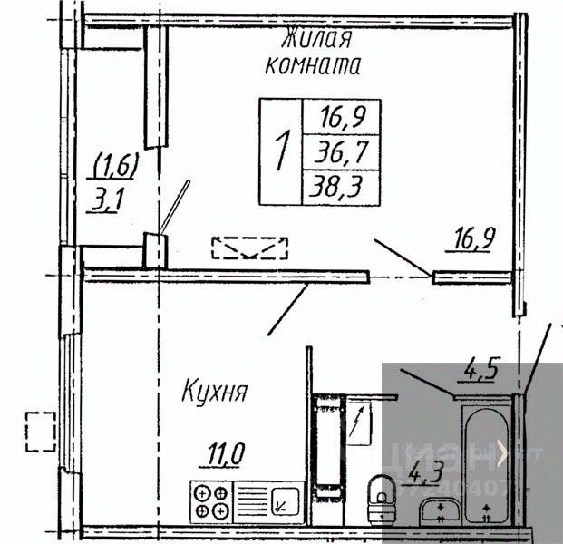 Общая площадь38,3 м2