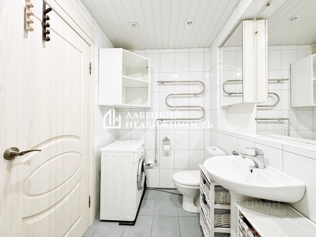 Совмешенный просторный санузел с приятным спокойным (как многое в Пушкине) белым дизайном.