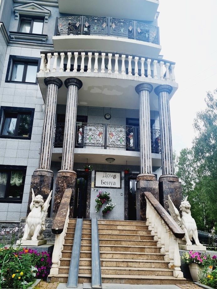 Вид из окон открывается во двор, где в шаговой доступности расположены многочисленные живописные водоёмы и зелёный парк, создавая атмосферу спокойствия и гармонии даже в городской среде.