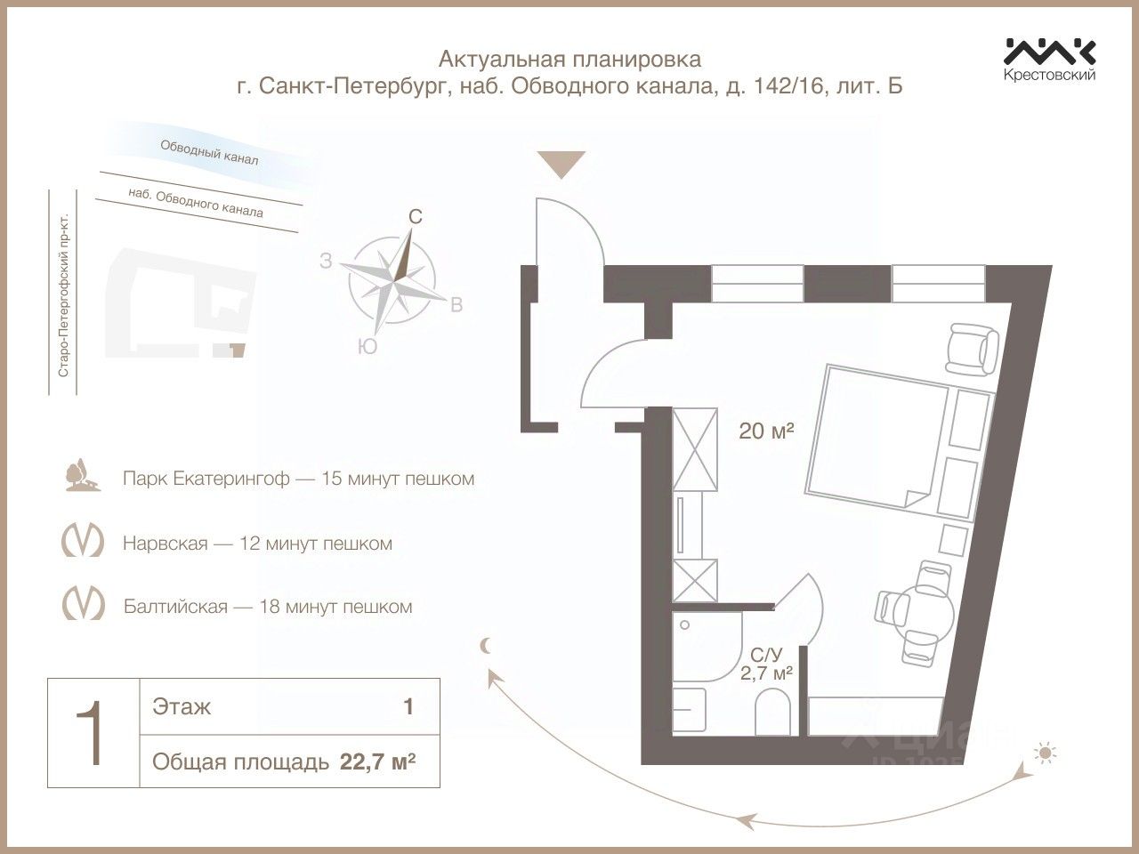 Общая площадь22,7 м2