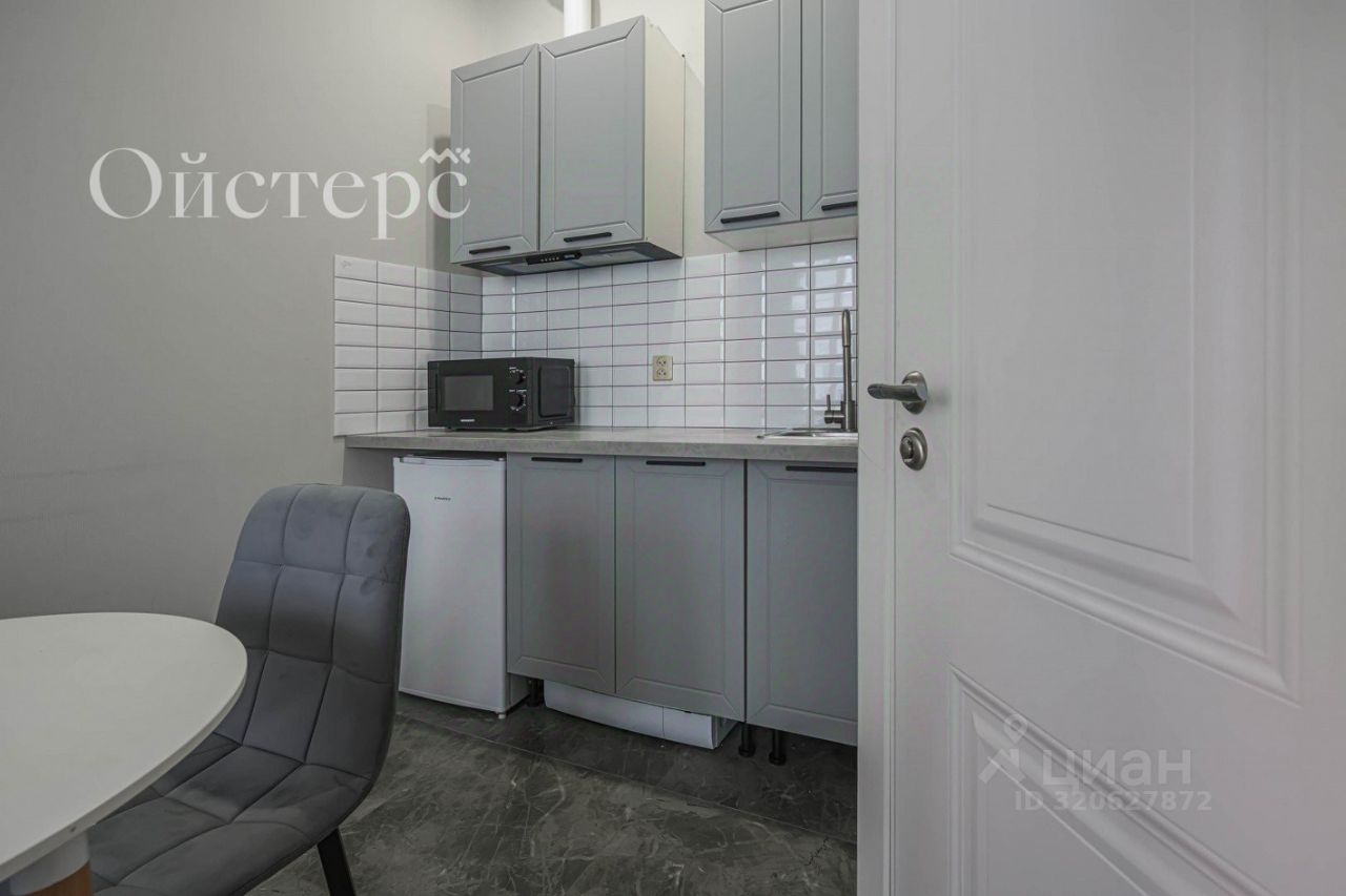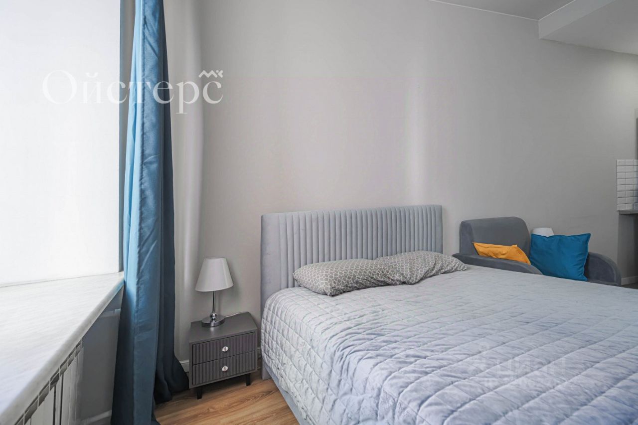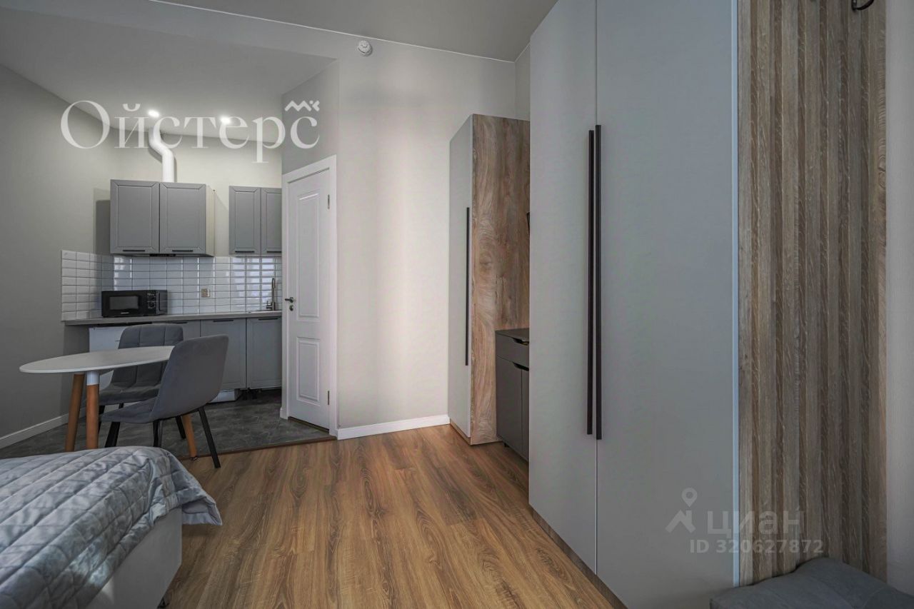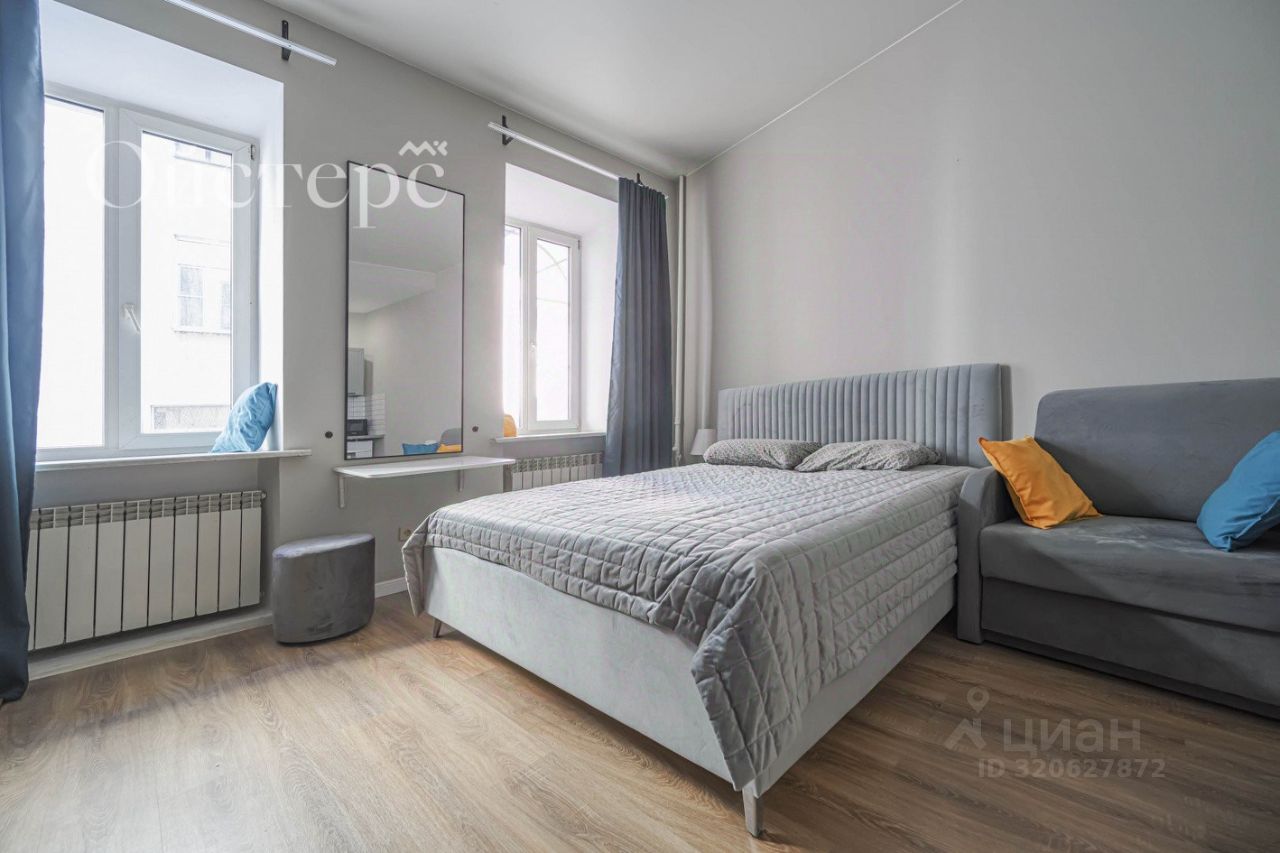 Общая площадь студии — 22.7 м², из которых 18 м² занимает жилое пространство. Выполнен качественный евроремонт, а высота потолков 3 метра добавляет пространству воздуха и свободы. Вся необходимая мебель, техника и оснащение остаются новому владельцу. Во дворе есть парковка.