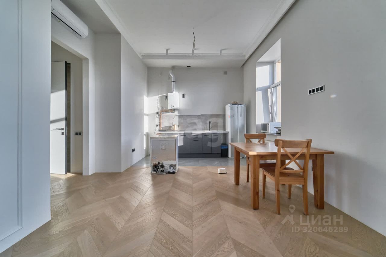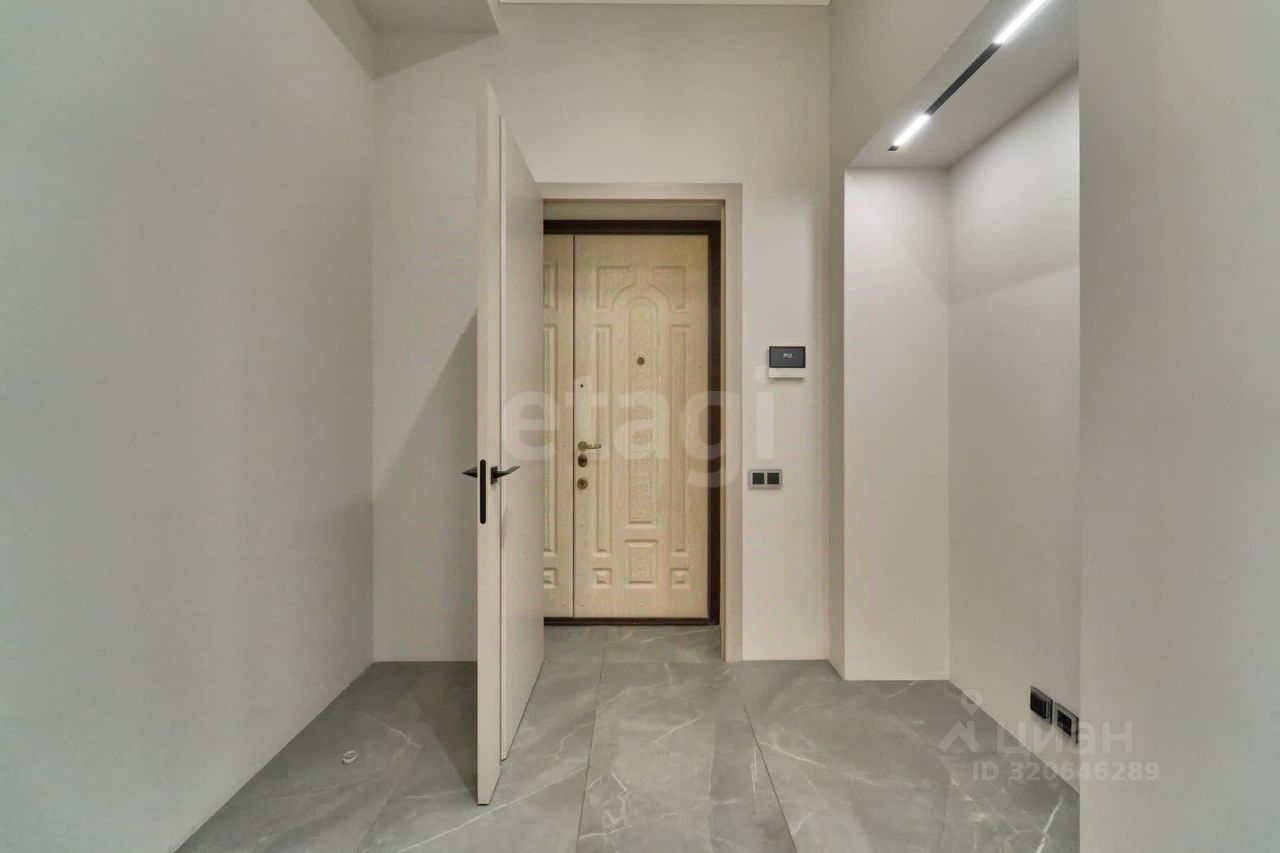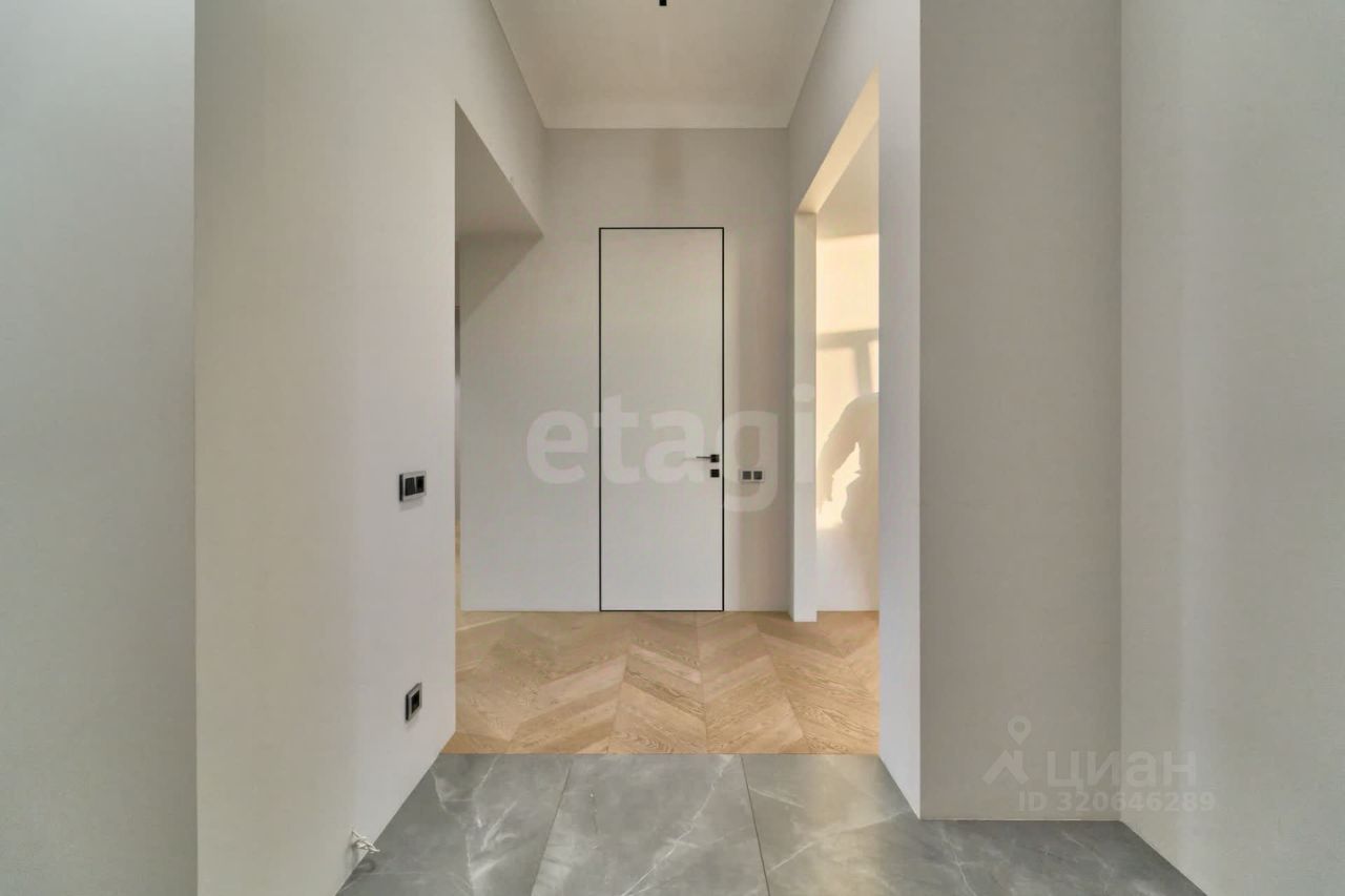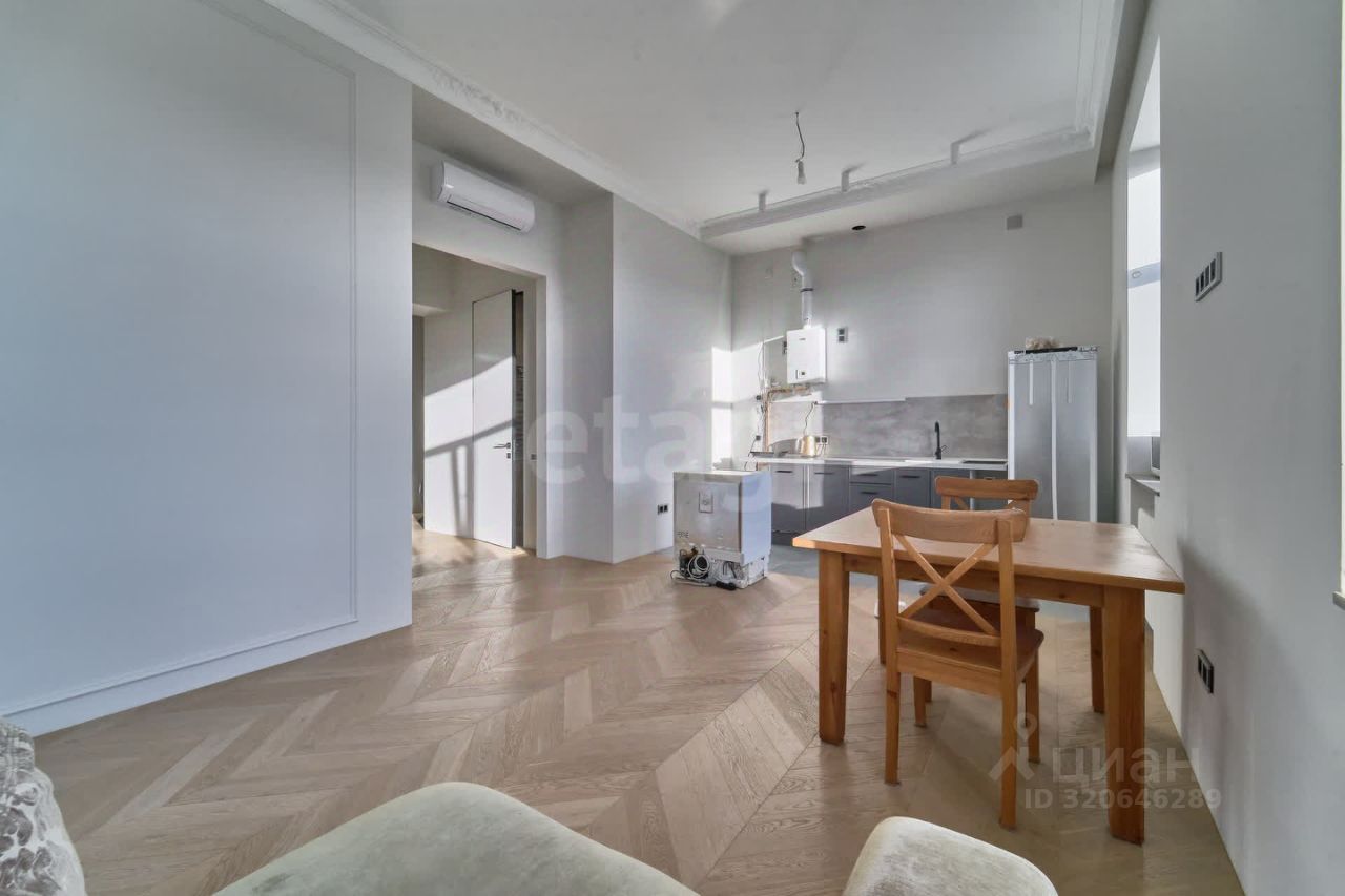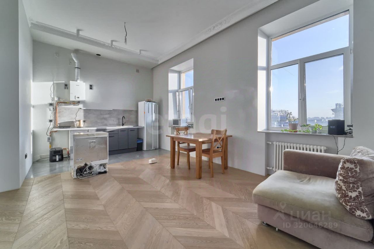 Расположена в престижном Кировском районе Санкт-Петербурга. Объект отличается продуманной планировкой: три изолированные комнаты правильной формы с панорамными окнами и французскими балконами, два санузла (ванная с окном и душевая), две гардеробные и техническое помещение. Кухня-гостиная площадью 28 м² объединена со столовой зоной и оснащена встроенной кухонной мебелью. В квартире выполнен качественный дизайнерский ремонт с использованием современных материалов: натуральный паркет, итальянская сантехника, окна с шумоподавлением. Все коммуникации заменены, установлена система кондиционирования и трехзонный теплый пол, радиаторы Arbonia обеспечивают равномерный обогрев.