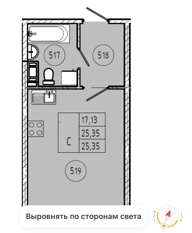 Предлагаем Вашему вниманию уютную широкую студию правильной формы в новом ЖК Pixel,