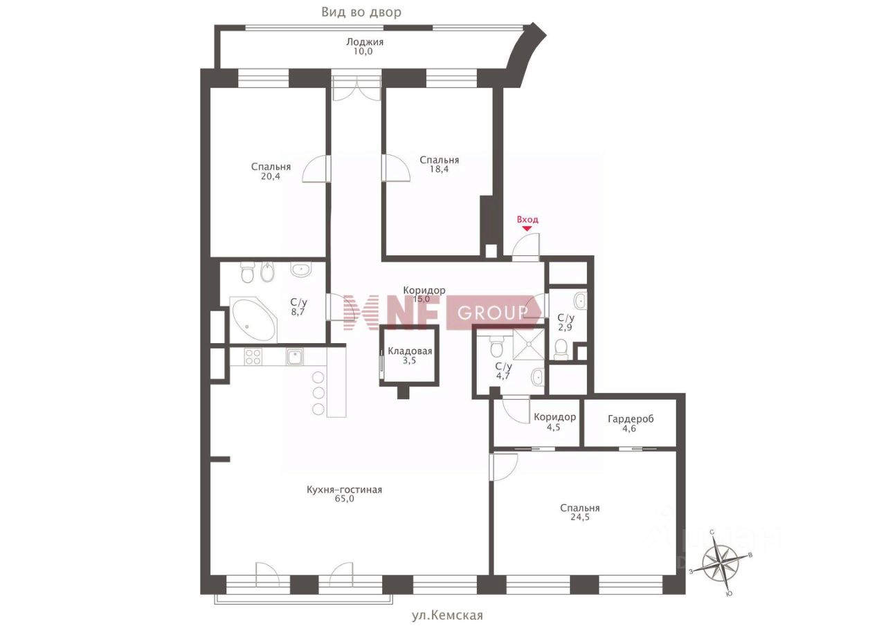 Удобная двусторонняя эргономичная планировка, полная света и простора. Особый шарм квартире придают французские балконы кухни-гостиной в 65 кв.метров. Отдельная мастер-зона. Вторая и третья спальни выходят во двор и имеют протяженную лоджию на все пространство. Три сан-узла, гардеробные и выделенная кладовая. Все комнаты более 20 кв.м. Высокие потолки.
