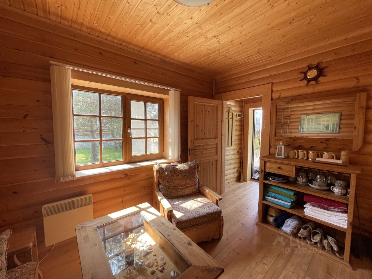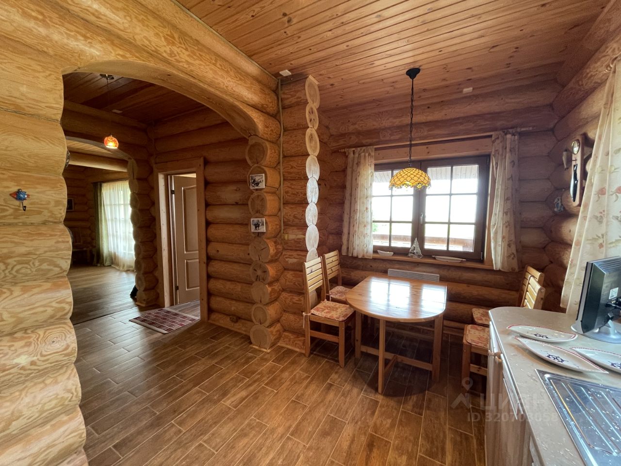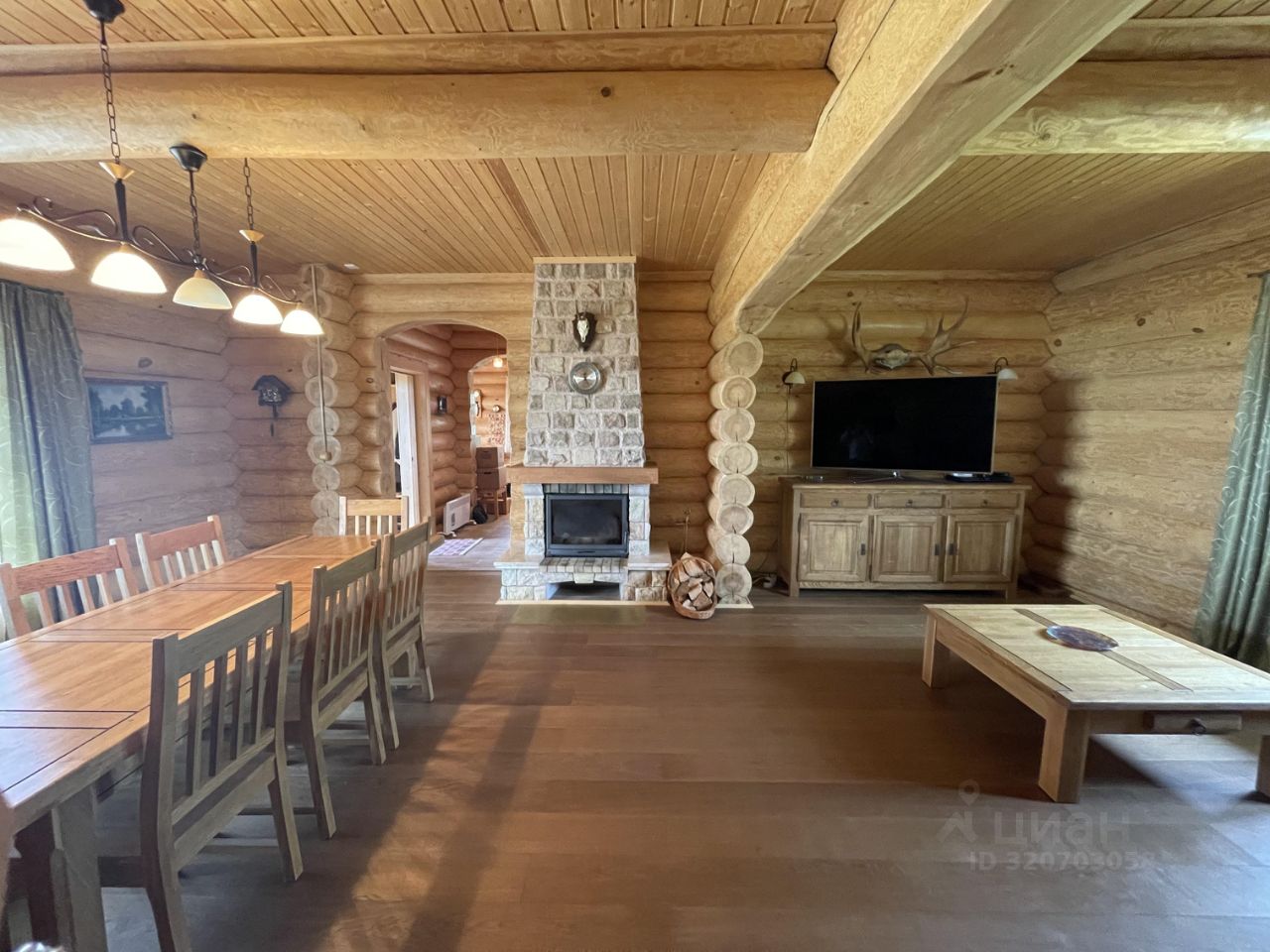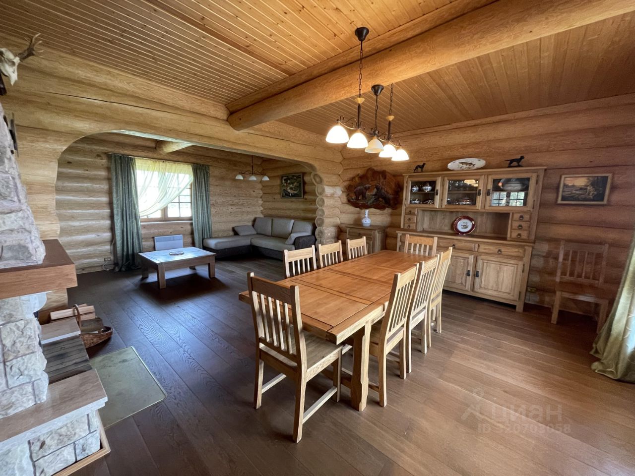 Дом 2007г. готов к проживанию! Продается с мебелью и техникой. Стены: рубленные из бревна. Пол: паркетная доска, кафель, на террасе- деревянная доска. Отопление: камин, печи в комнатах, конвекторы электрические.