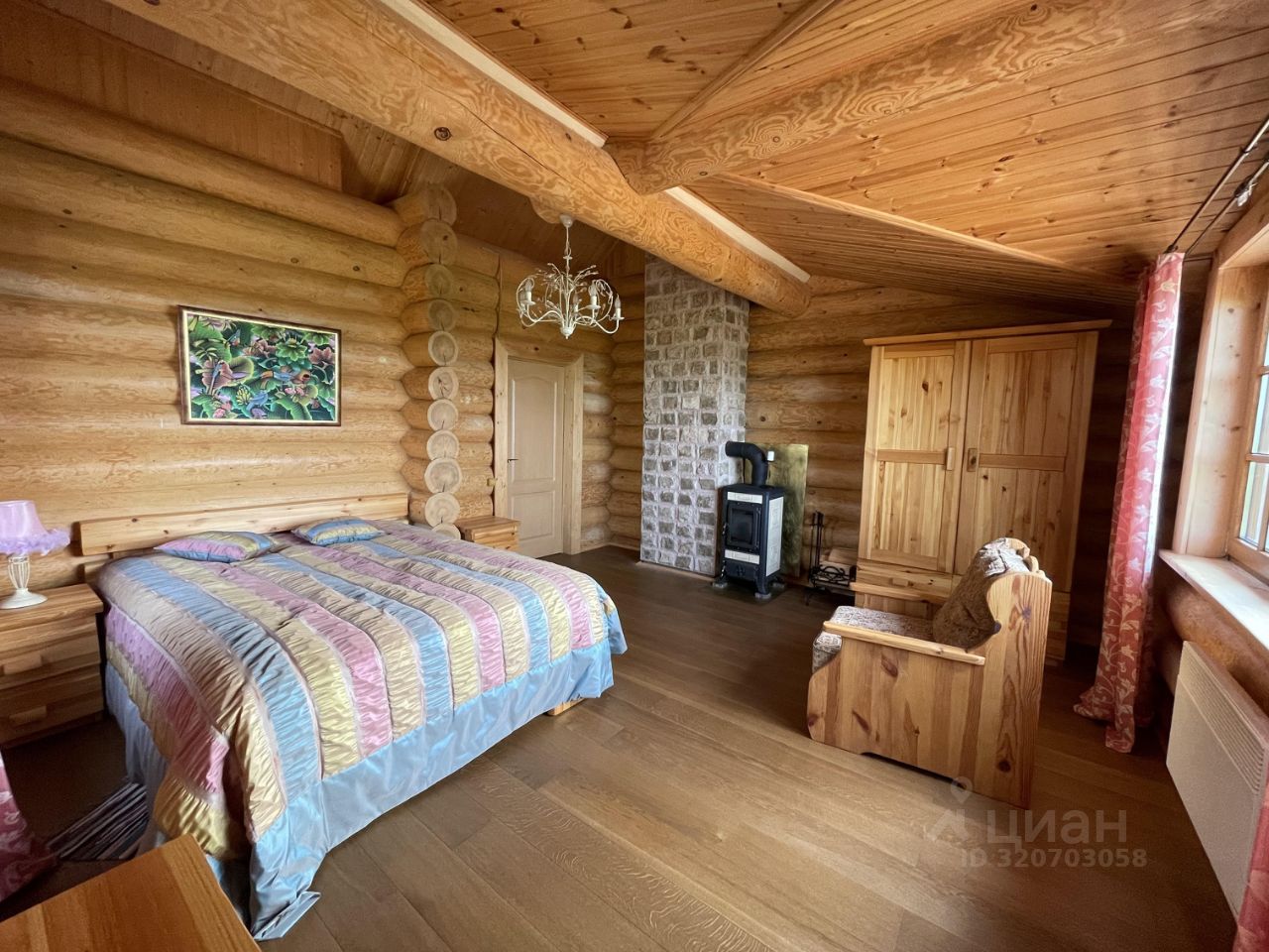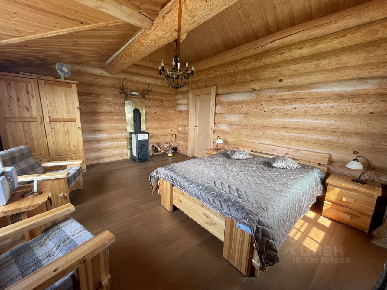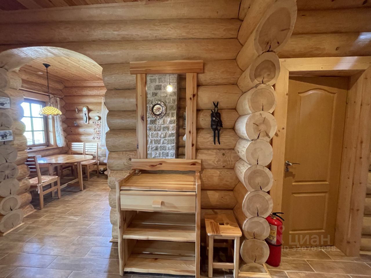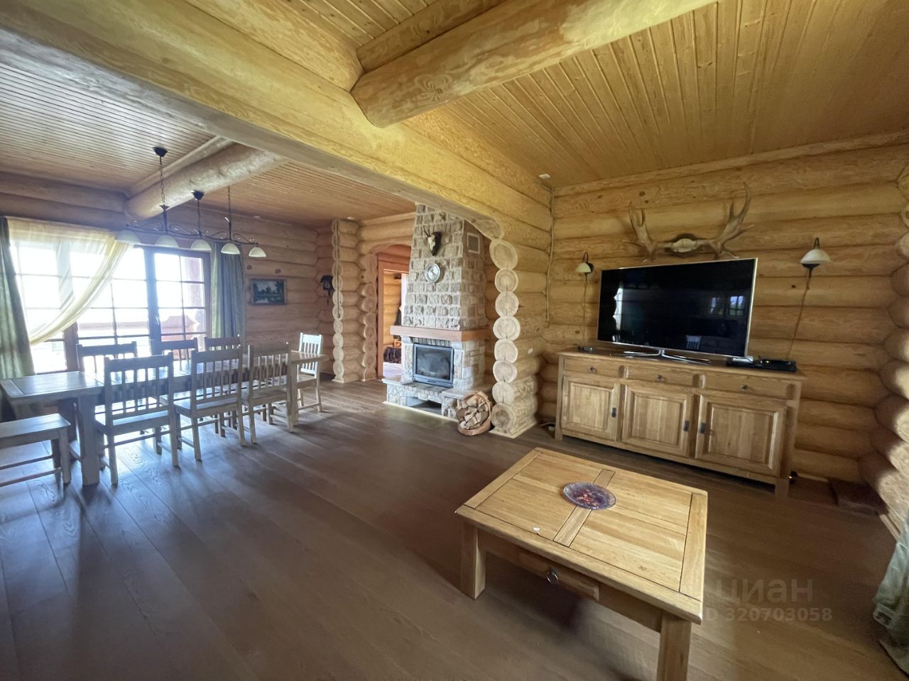 Дом 2007г. готов к проживанию! Продается с мебелью и техникой. Стены: рубленные из бревна. Пол: паркетная доска, кафель, на террасе- деревянная доска. Отопление: камин, печи в комнатах, конвекторы электрические.