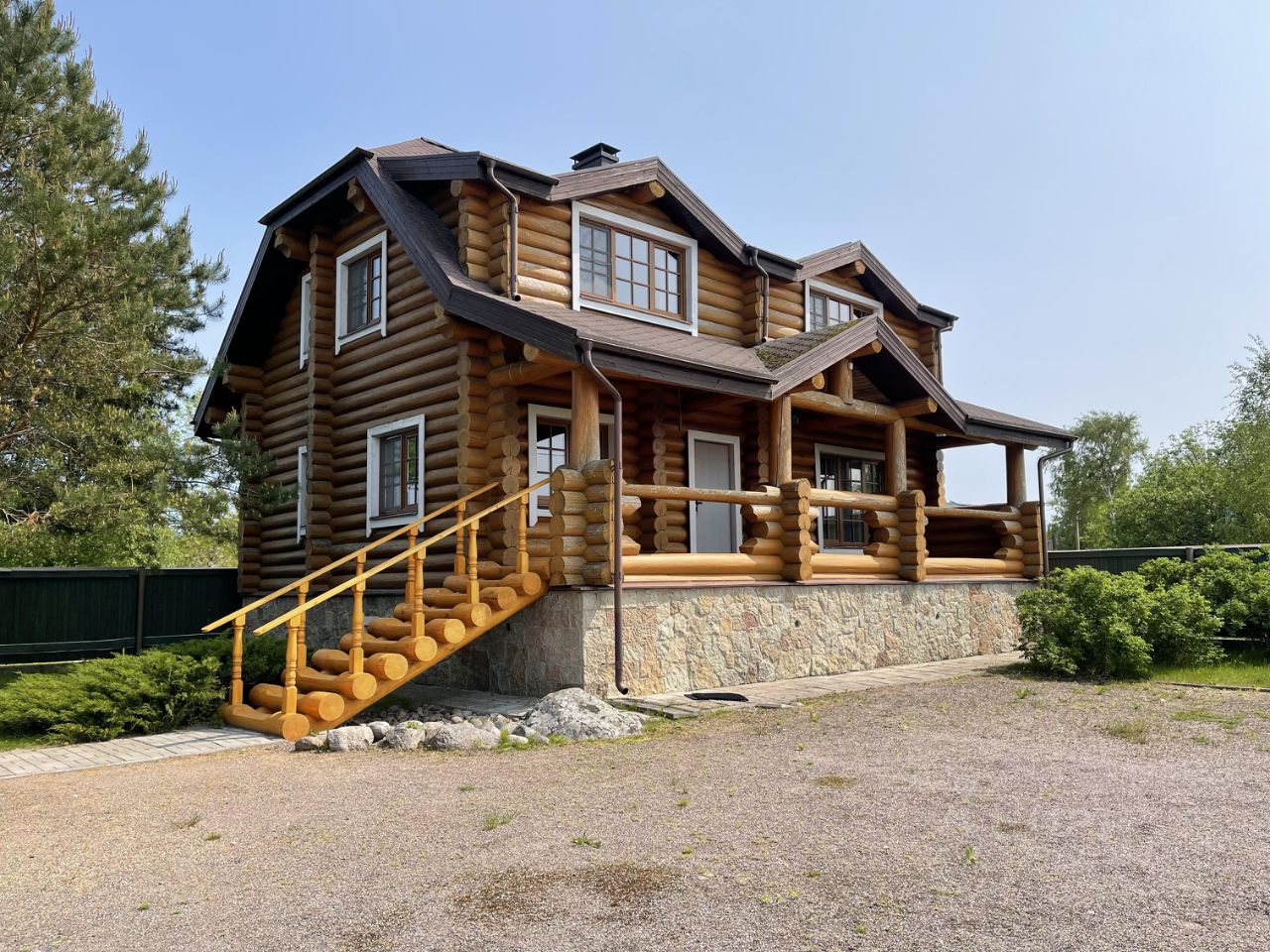 Дом 2007г. готов к проживанию! Продается с мебелью и техникой. Стены: рубленные из бревна. Пол: паркетная доска, кафель, на террасе- деревянная доска. Отопление: камин, печи в комнатах, конвекторы электрические. Общая площадь дома 143,5 м2. Комнаты правильной формы. Терраса. Цоколь с подполом, два санузла. На первом этаже: гостиная 38,8м2, кухня 10,8м2, санузел 6,5м2, прихожая 6,7м2, лестница 5,9м2, тамбур 2м2, терраса 17,7м2. На втором этаже: 3-и комнаты: 21,5м2 +23,8м2+ 6,6м2, холл 10,6м2 и санузел 6,6м2.