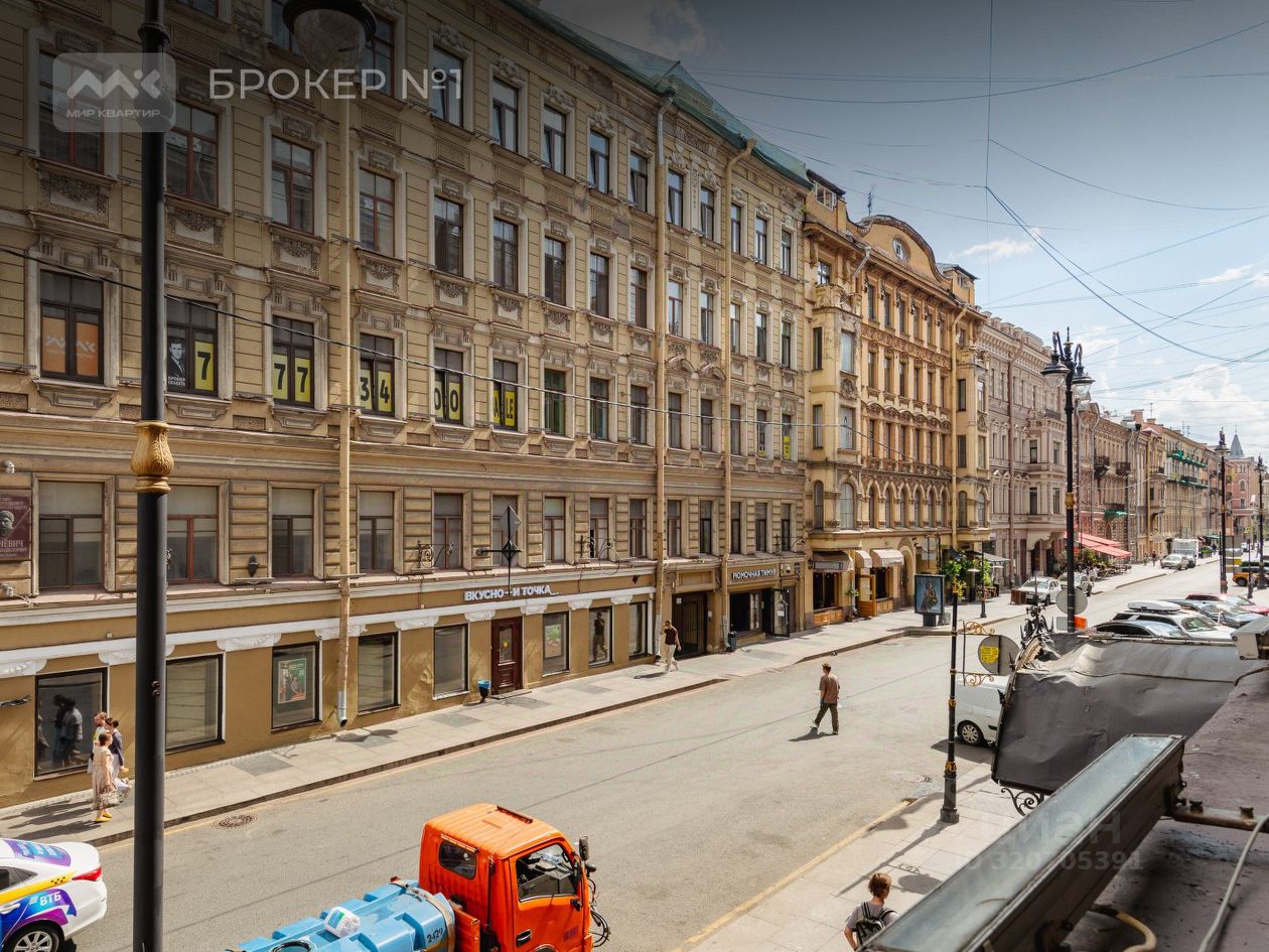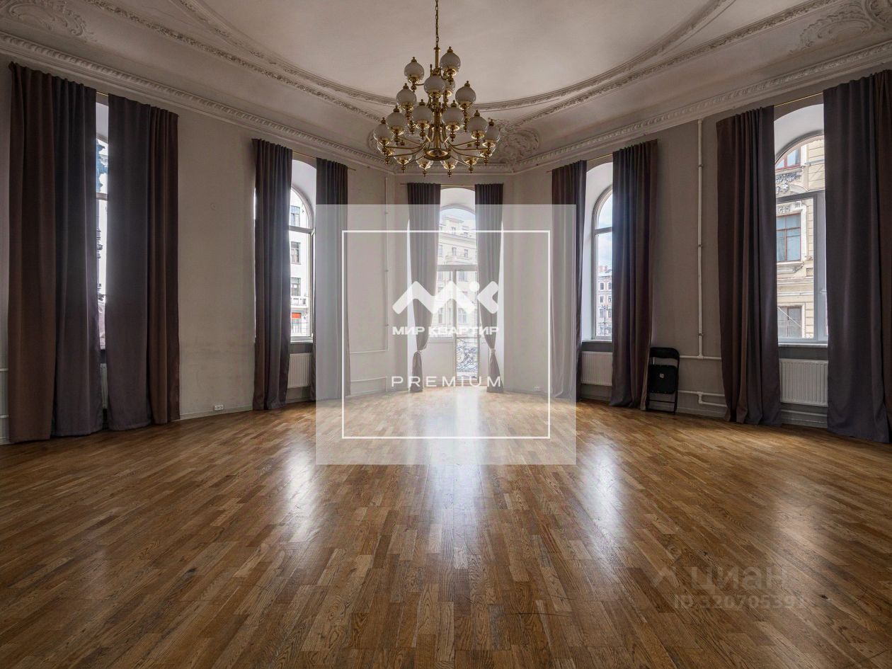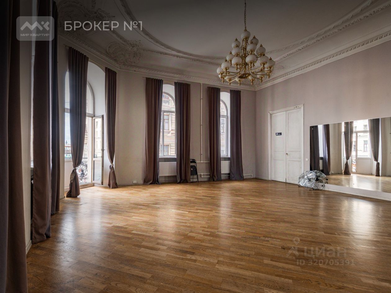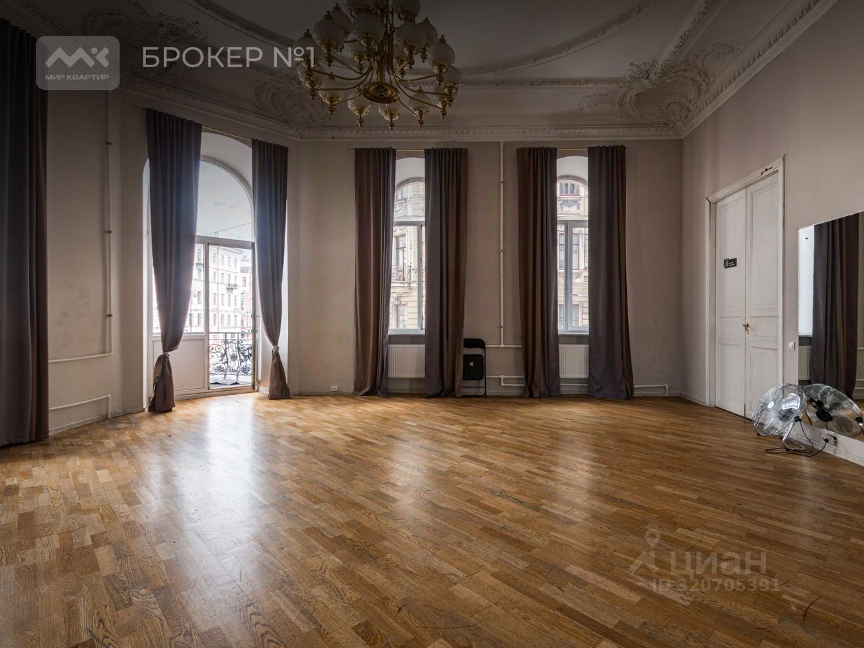 234 квадратных метра красоты, воздуха, устремлений, атмосферы и истории. 14 огромных фасадных арочных окон на Невский проспект и Рубинштейна, обеспечивающие отличную инсоляцию в просторных залах, увенчанных исторической лепниной в прекрасном состоянии. Лепнина не находится под охраной КГИОП. Высокие (4.30 м) потолки некогда барской квартиры на лучшем, втором этаже не оставят равнодушным никого. Неповторимый узнаваемый балкончик, выходящий прямиком на пересечение Невского и Рубинштейна, с которого открывается перспектива главного в городе проспекта.