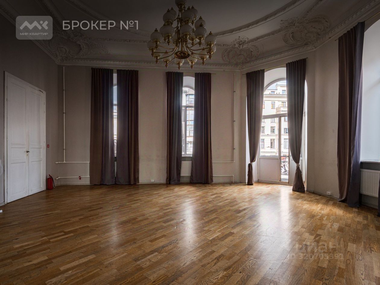 234 квадратных метра красоты, воздуха, устремлений, атмосферы и истории. 14 огромных фасадных арочных окон на Невский проспект и Рубинштейна, обеспечивающие отличную инсоляцию в просторных залах, увенчанных исторической лепниной в прекрасном состоянии. Лепнина не находится под охраной КГИОП. Высокие (4.30 м) потолки некогда барской квартиры на лучшем, втором этаже не оставят равнодушным никого.