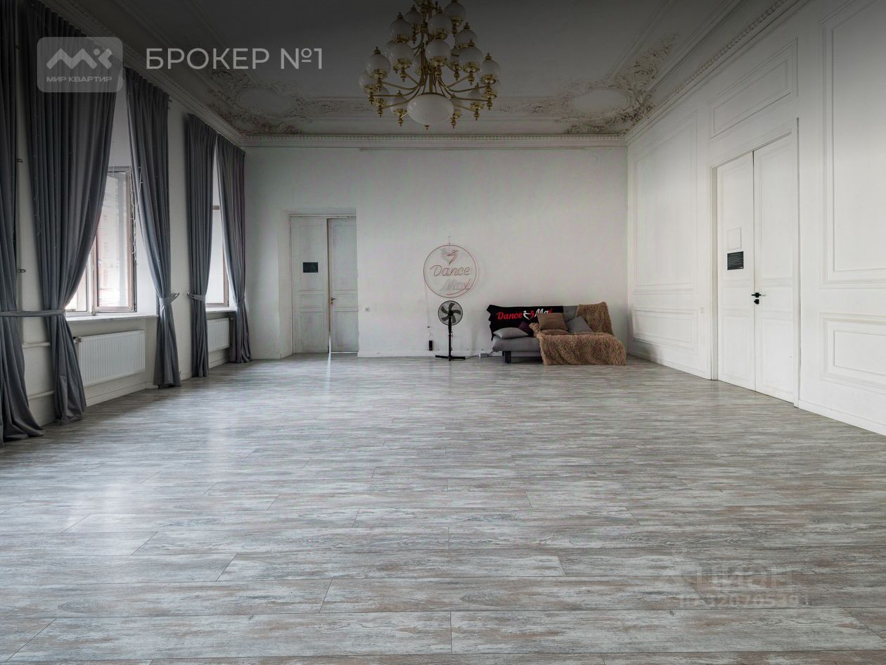 В данный момент помещение занимает танцевальная студия. Нежилой фонд, мощность - 10 КВт, 2 мокрые точки, вход с Рубинштейна.
