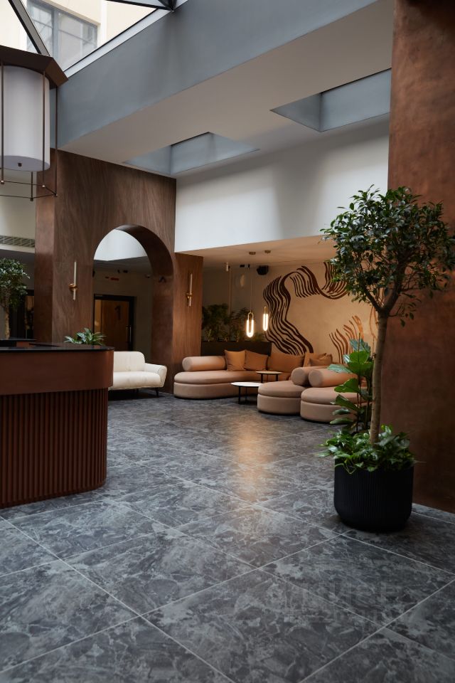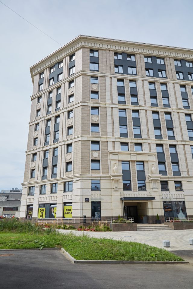 Захватывает дух и поражает воображение. Проект создан знаменитой архитектурной мастерской Цыцына. В архитектуре применяются навесные фасады из фиброцементных фактурных панелей, выполненных в спокойных пастельных тонах. Парадный фасад визуально разделен на 3 уровня. Первые этажи выделены крупным рустом, с 3 этажа панели облицованы искусственным камнем травертин, спаренными пилястрами и зеркальными окнами, а 10 этаж венчает массивный карниз.