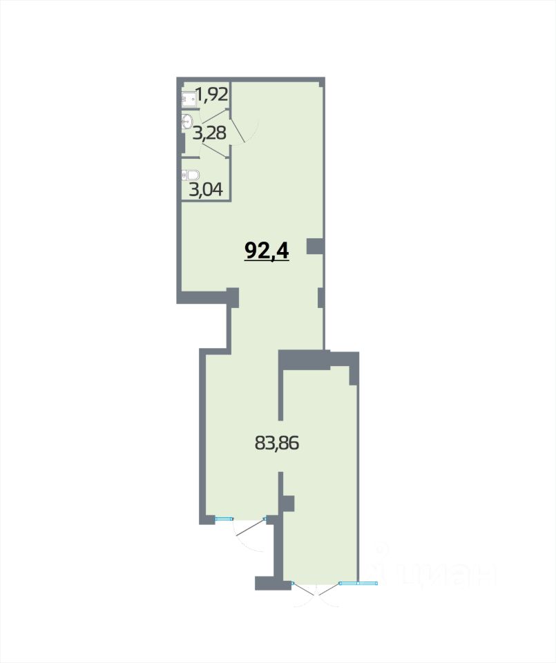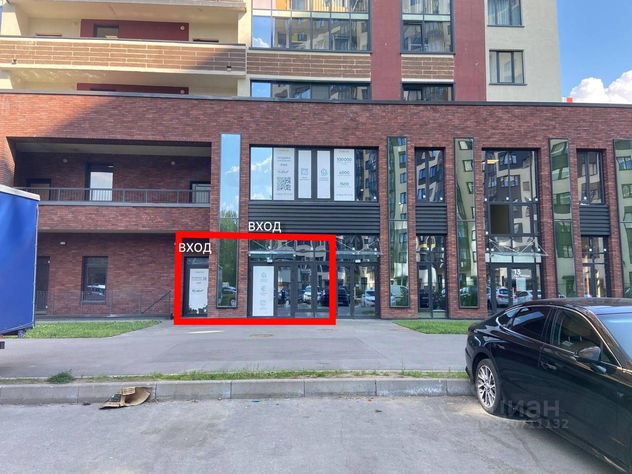 Два входа с фасада. Напротив помещения большая парковка, что позволяет есть подъезд для грузовых машин.