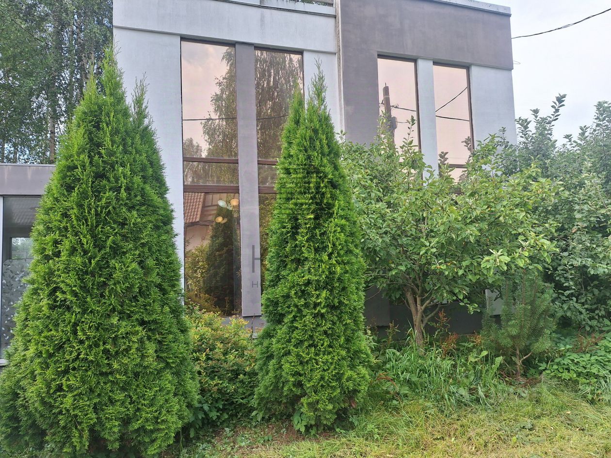 Дом: Панорамные тонированные окна. 1 этаж: кухня-гостиная, раскладной диван, санузел с ванной 2 этаж: 3 спальни, в одной — двуспальная кровать, в другие доставим мебель по вашему запросу.