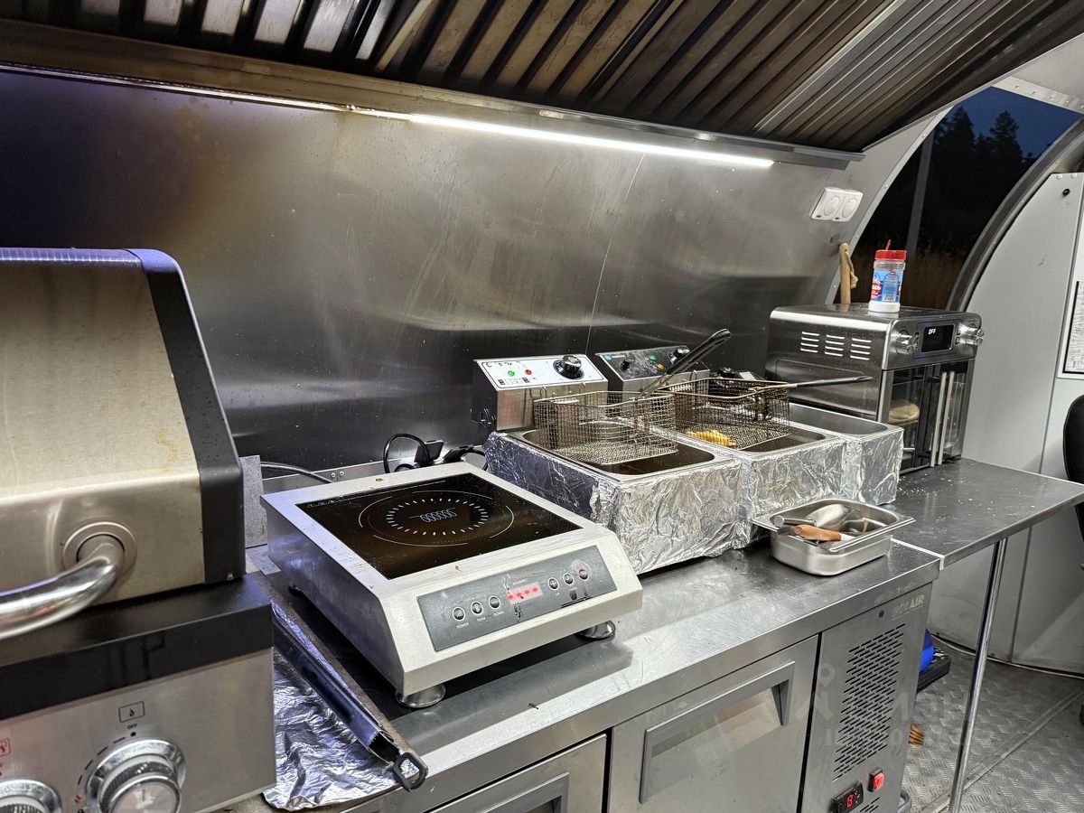 2. Проверенная концепция: - Успешное меню: люля-кебабы в чиабатте, колбаски с тушеной капустой, картошка фри, и фирменные бургеры из рваного мяса и мраморной говядины, а также горячие чебуреки из мяса и сыра. - Рядом нет достойных альтернатив. - Отлаженные процессы: время подачи свежеприготовленных горячих мясных блюд 5-7 минут 3. Что входит в продажу: - Право аренды на полностью оборудованный фудтрак, вытяжки, холодильники, морозильные камеры, кондиционер, подогрев пола, освещение внутреннее и внешнее, холодильник под напитки, гриль электрический, духовой шкаф, бойлер, фритюрница, гастроемкости, бойлер и пр. - детали при осмотре. Фудтрак можно выкупить (оговаривается отдельно) - Эксклюзивное право аренды на парковке у Ленты с гарантией того, что здесь не будет конкурентов, предлагающих горячие мясные блюда. - Оборудование: газовый гриль Start Grill Prime Pro 510, фритюрница 4л, фритюрница 6л, слайсер, колбасный шприц, кухонные весы 2 шт, вакууматор, мясорубка, планетарный миксер, машинка для кебаба Lavna pro, шампура, индукционная плита, профессиональная посуда, мини-печь с аэрогрилем и пр., а также мебель столы, стулья, большой двойной зонт, ограждения.