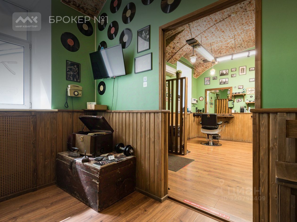 Пространство фактически разделено на два независимых помещения с двумя отдельными входами со двора, с двумя мокрыми точками, оборудованное и, соответственно, сдаваемое двум независимым арендаторам - успешный барбершоп и магазин одежды.
