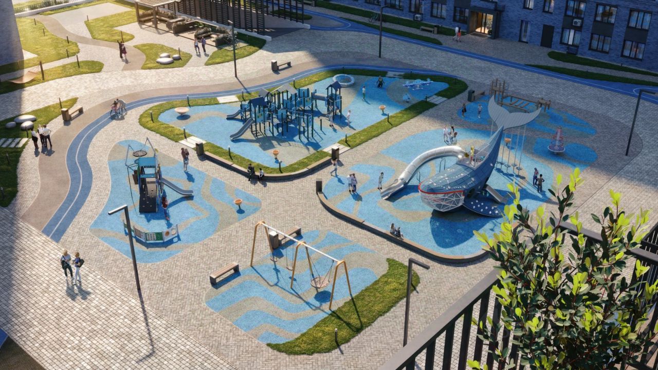Между домами раскинется большой двухуровневый пешеходный бульвар. Первый уровень прогулочный с местами для отдыха, амфитеатром и фонтанами. На втором уровне расположатся площадки для детей, спортивных игр и тренировок. Квартал будет располагать богатой инфраструктурой: на первых этажах разместятся магазины, пекарни, кофейни, пункты выдачи, аптеки, детские центры, цветочные салоны и многое другое, что сделает жизнь поистине комфортной. В жилом комплексе есть кладовые, а также несколько видов паркинга: уличный гостевой, закрытый теплый и паркинг в стилобате, попасть в который можно на лифте с любого жилого этажа.
