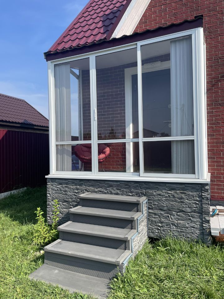 Дом из профилированного бруса , утеплен минеральной ватой Paroc , отделка польские панели под кирпич Vox premium. Кровля металлочерепица Grand Line.