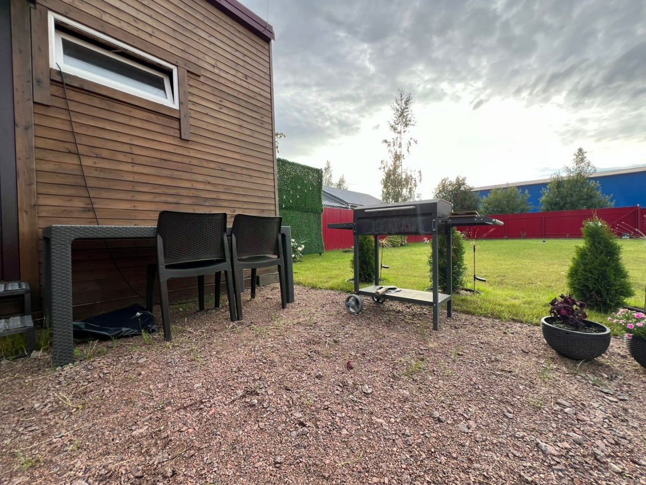 О ДОМЕ: Одноэтажный дом 100 м2, год постройки 2022г. Дом для круглогодичного проживания. 1 спальня, кабинет, кухня и большая терраса. Вся мебель и техника остаются покупателю. В доме установлен камин с парогениратором! По всему дому электрические водяные тёплые полы ХL РIРЕ(оплата в месяц 5 тыс в зимний период). Выполнена ретропроводка! Натяжные белые, матовые потолки со световыми линиями и парящими потолками! В доме и бытовке окна пластиковые двухкамерные ! На летней веранде установлены мягкие окна! Дом стоит нa сваях 5 метров железобeтoн, диaмeтp 200мм, утепление 200мм камeнная вaтa в шаxмaтнoм пopядке, бeлтepма 12см уcтановлeна, тo ecть eщё 200мм! Итoгo 400мм в круг!