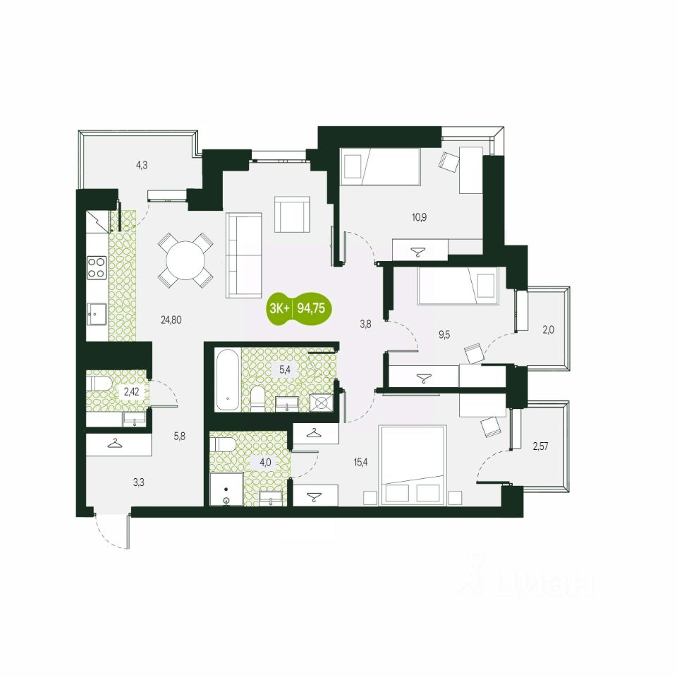 Секции удалены друг от друга, чтобы жители могли наслаждаться окружающим пространством, а не жить в формате ''окна в окна''.