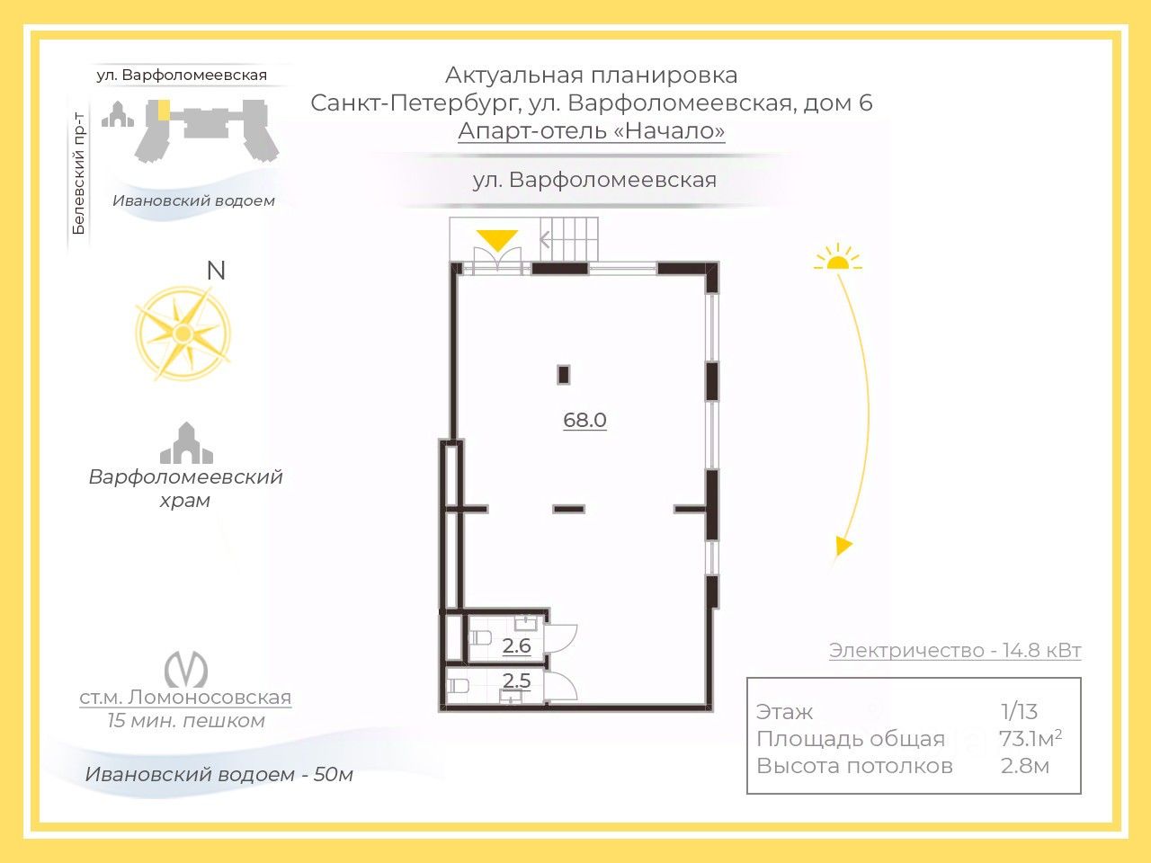 Помещение с отделкой, вход с улицы Варфоломеевской, общей площадью 73,1 кв.м.