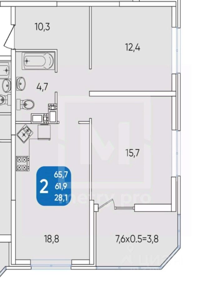 Площадь 61,9 м² на 21 этаже с шикарным видом Цена: 10 500 000
