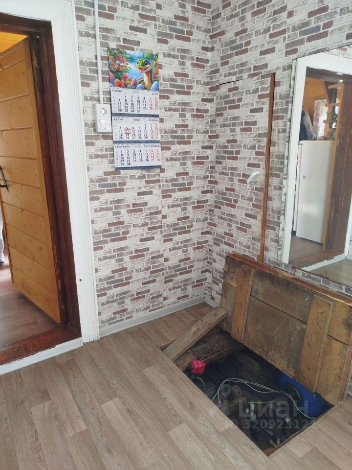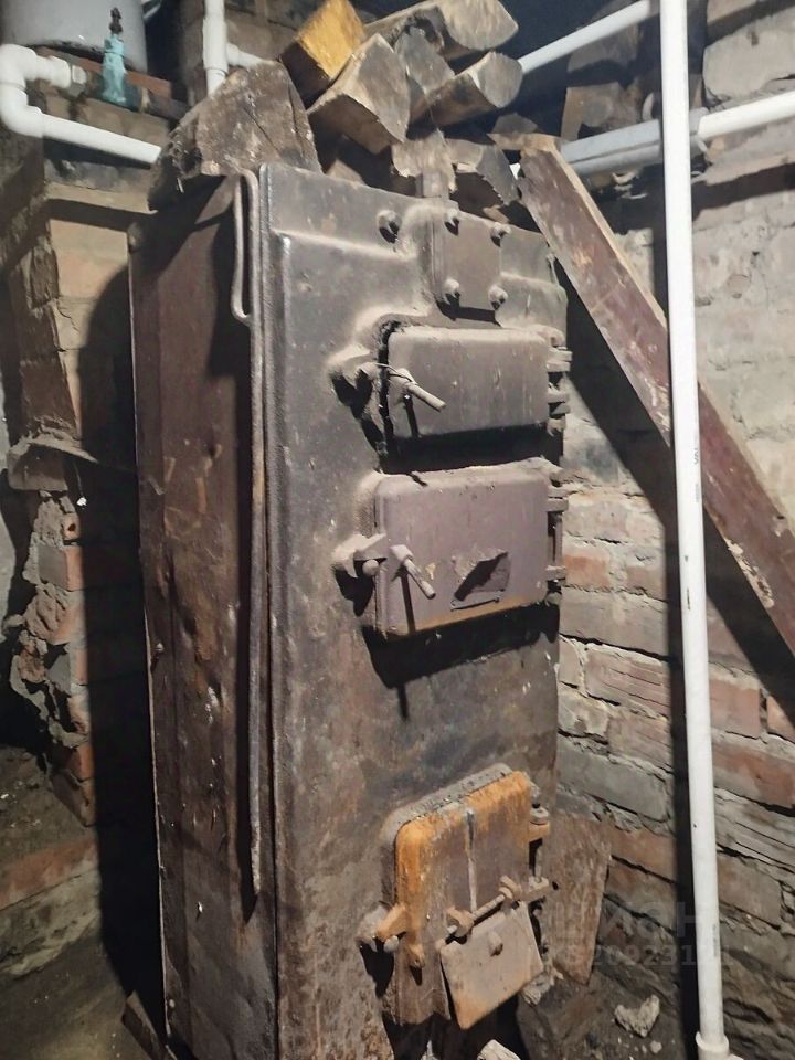 ДОМ: построен в 1980 году из бревна, снаружи обшит доской. Стены толстые, летом прохладно, зимой тепло. Фундамент ленточный, бетонный. К дому пристроена теплая веранда площадью 30 м2 (два этажа). Дом газифицирован. Отопление газовый котел в вынесенным датчиком температуры (работает по температуре воздуха в помещении, а не по температуре теплоносителя). Водяной контур отопления проведен по всему дому. Имеется цокольный этаж ( глубокий), выложенный красным кирпичом с бетонным полом, в котором установлен резервный (исправный, включенный в систему отопления) угольно-дровяной котел, постоянно готовый к работе, организован ввод воды в дом из скважины и разводка воды холодной и горячей в кухню, к умывальнику и санузлу. В цокольном этаже возможно хранить припасы и консервацию, имеется суточный запас дров.