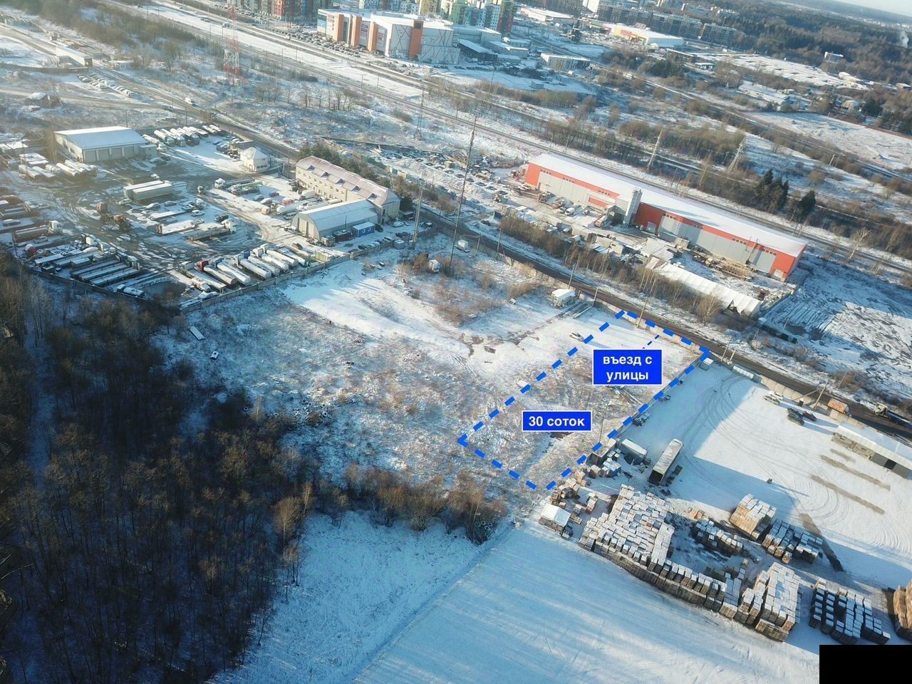 — заезд на участок с улицы Индустриальная, рядом действующие производства, 200 м до Петровича.