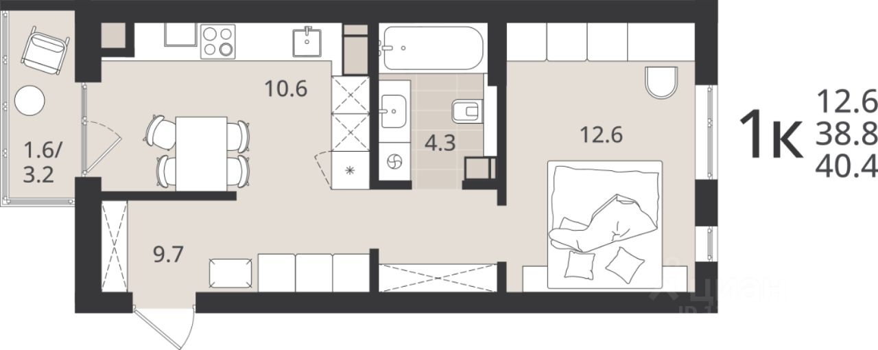 Общая площадь38,8 м2
