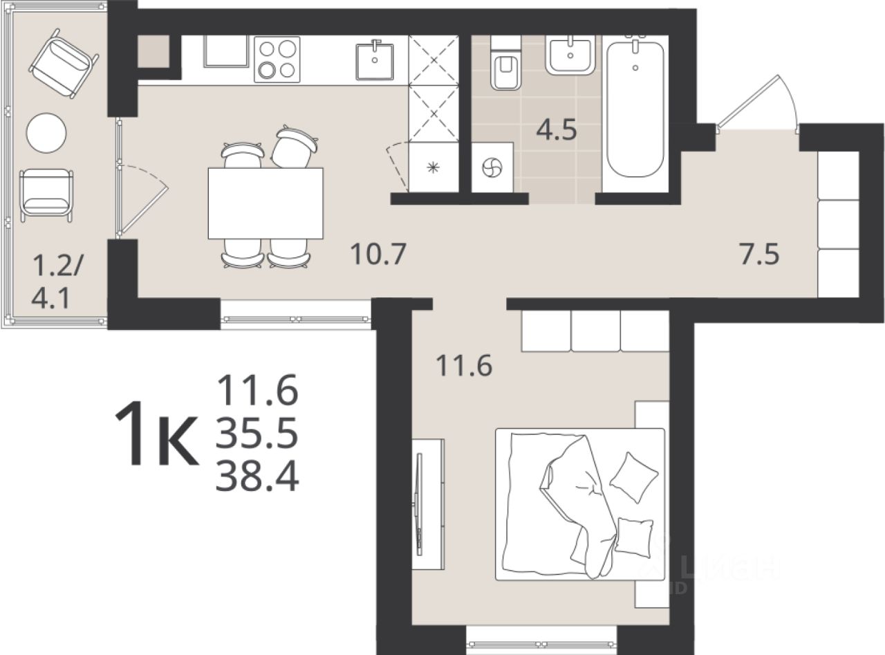 Общая площадь35,5 м2