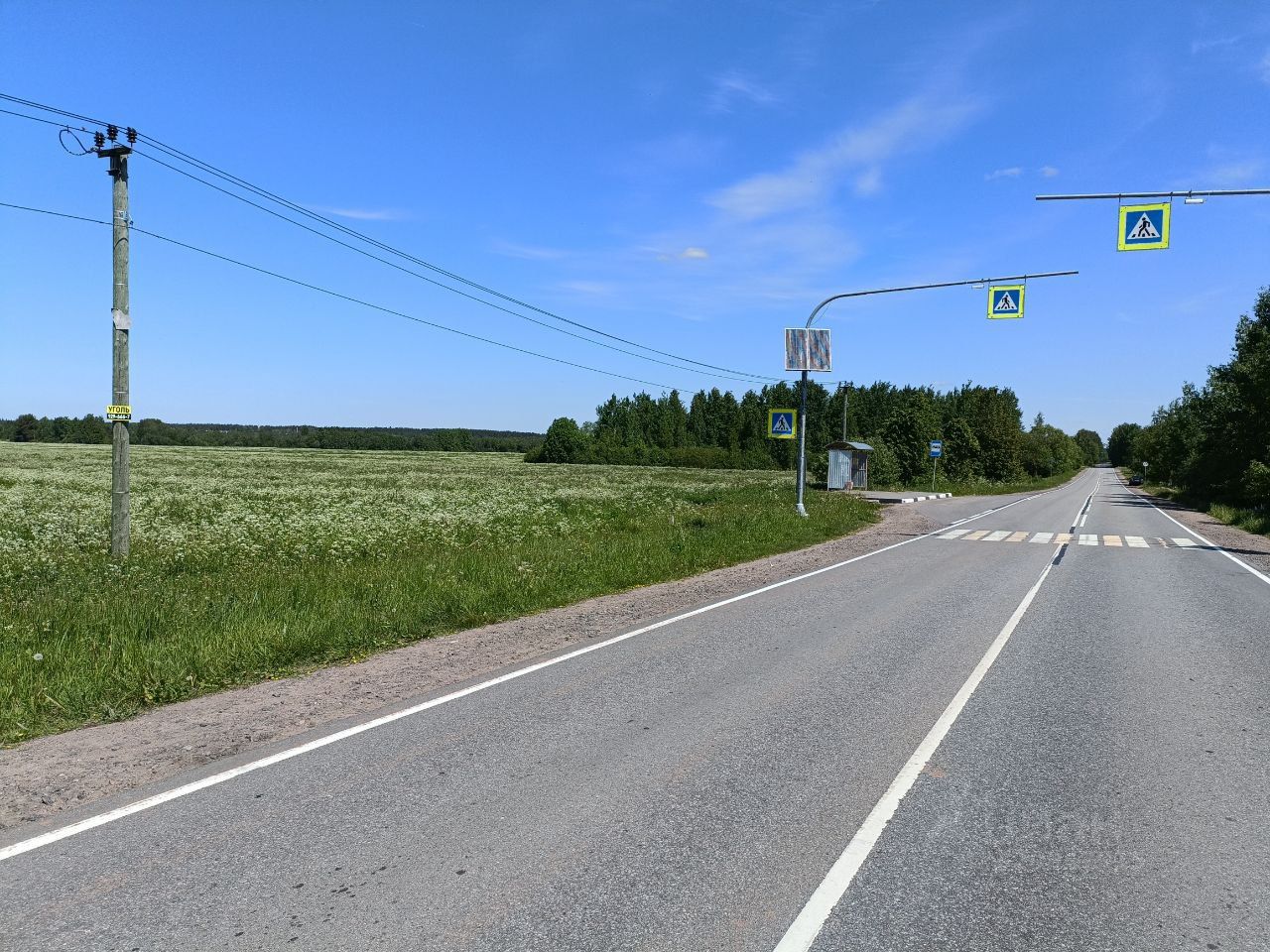 Электричество мощностью 15 кВт от Ленэнерго, опорные столбы уже установлены в поселке,