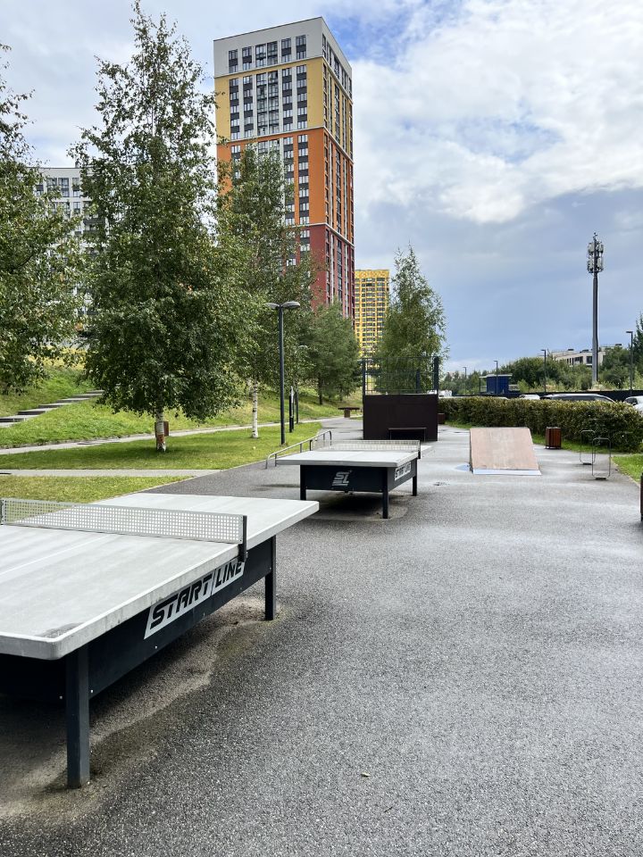 •Современные детские площадки для всех возрастов •Спортивные зоны: футбольное и баскетбольное поля, столы для настольного тенниса •Красивый детский сад прямо во дворе •В пешей доступности школы, взрослая и детская поликлиники •Полностью сложившаяся торговая инфраструктура