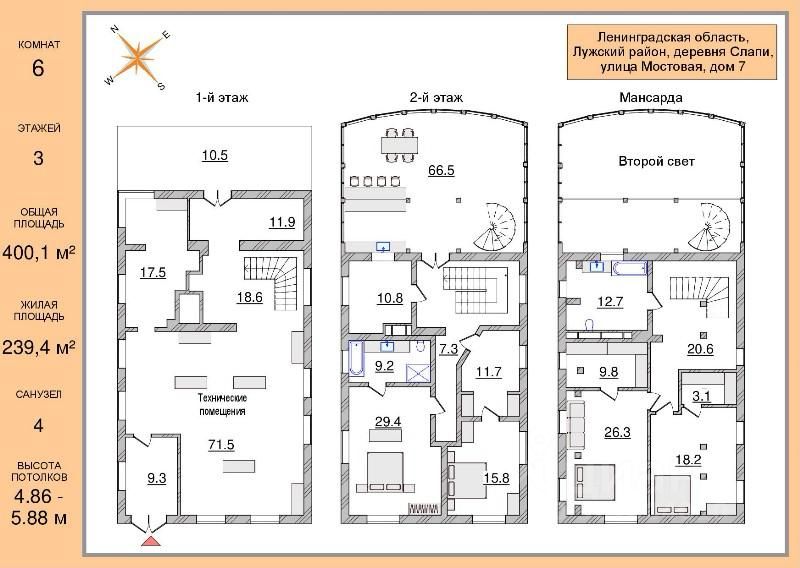 ОПИСАНИЕ ДОМА: Площадь дома с высоким мансардным этажом 400.1 кв.м.