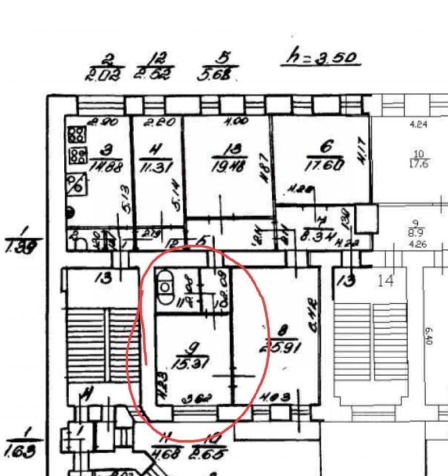 Комната граничит с ванной, можно установить с/у в комнате и оборудовать квартиру - студию. На первом и втором этажах под этой квартирой комнаты с уже оборудованными с/узлами.