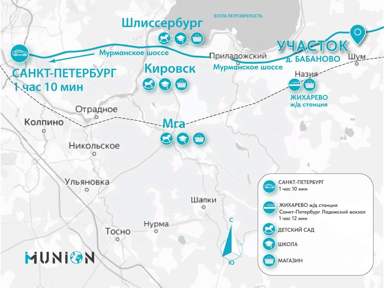ИНФРАСТРУКТУРА В деревне работают магазины и пункты выдачи маркетплейсов. В 40 минутах езды — Кировск и Шлиссельбург с полным набором инфраструктуры: супермаркеты, аптеки, АЗС, кафе, строймагазины и т.д.