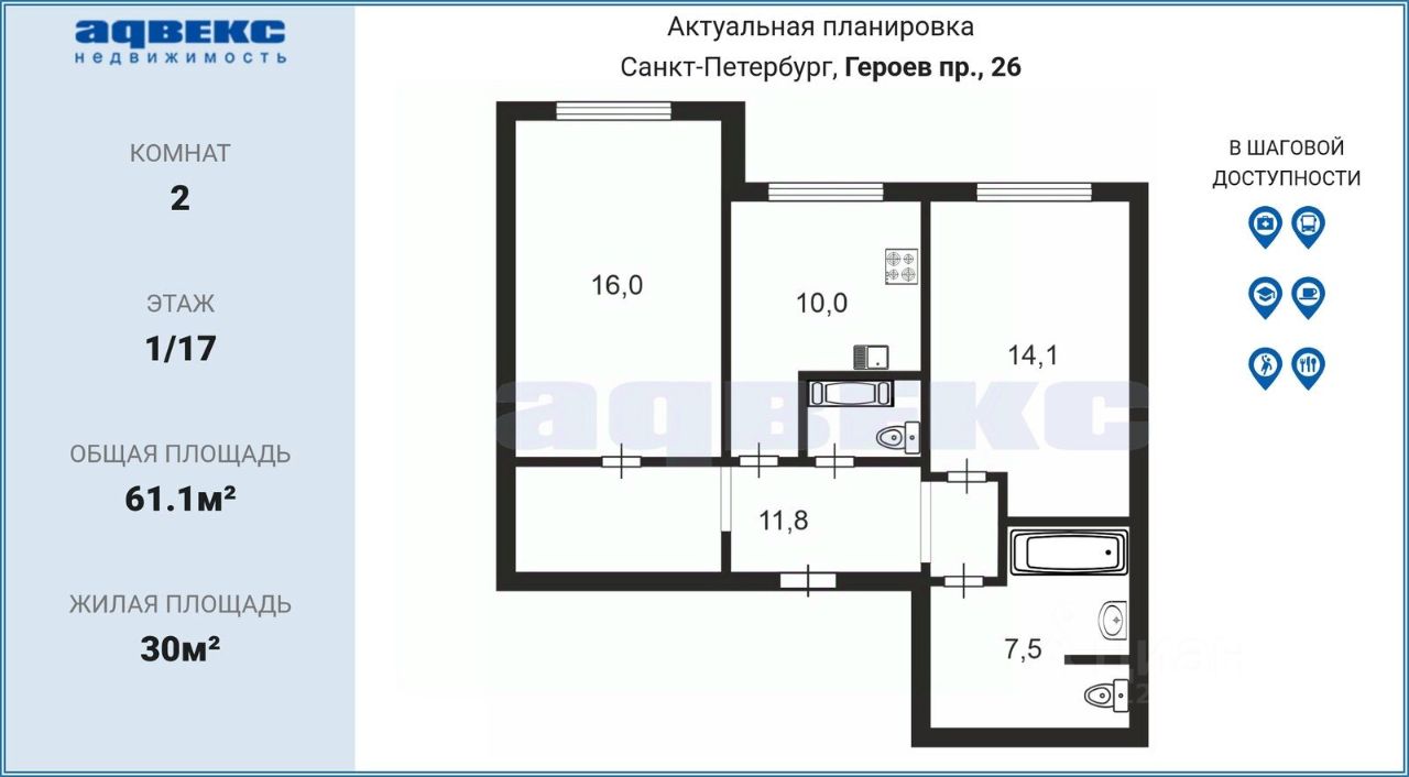 продам 2-к, Героев проспект, 26 корп. 38 998 000 ₽