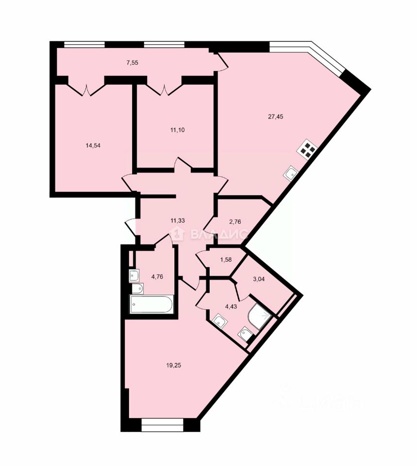 Общая площадь квартиры составляет 98,9 кв. м, из которых 44,89 кв. м приходится на жилую площадь. Просторная кухня-гостиная площадью 27,45 кв. м станет местом для семейных ужинов и дружеских встреч. Высота потолков 2,8 м создаёт ощущение простора и свободы.